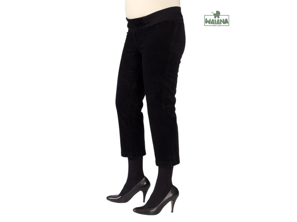 3/4 tehotenské menčestrové nohavice s úzkymi nohavicami. Predný diel s falošným zapínaním, zadný diel hladký. Vhodné k čižmám alebo dajú vyniknúť pekným pančuchám. V páse je všitý úplet s možnosťou regulácie obvodu pásu.