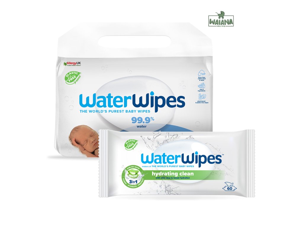 - WaterWipes sú najčistejšie vlhčené obrúsky na svete. Obsahujú iba dve prírodné ingrediencie, 99,9% vody a kvapku ovocného extraktu.