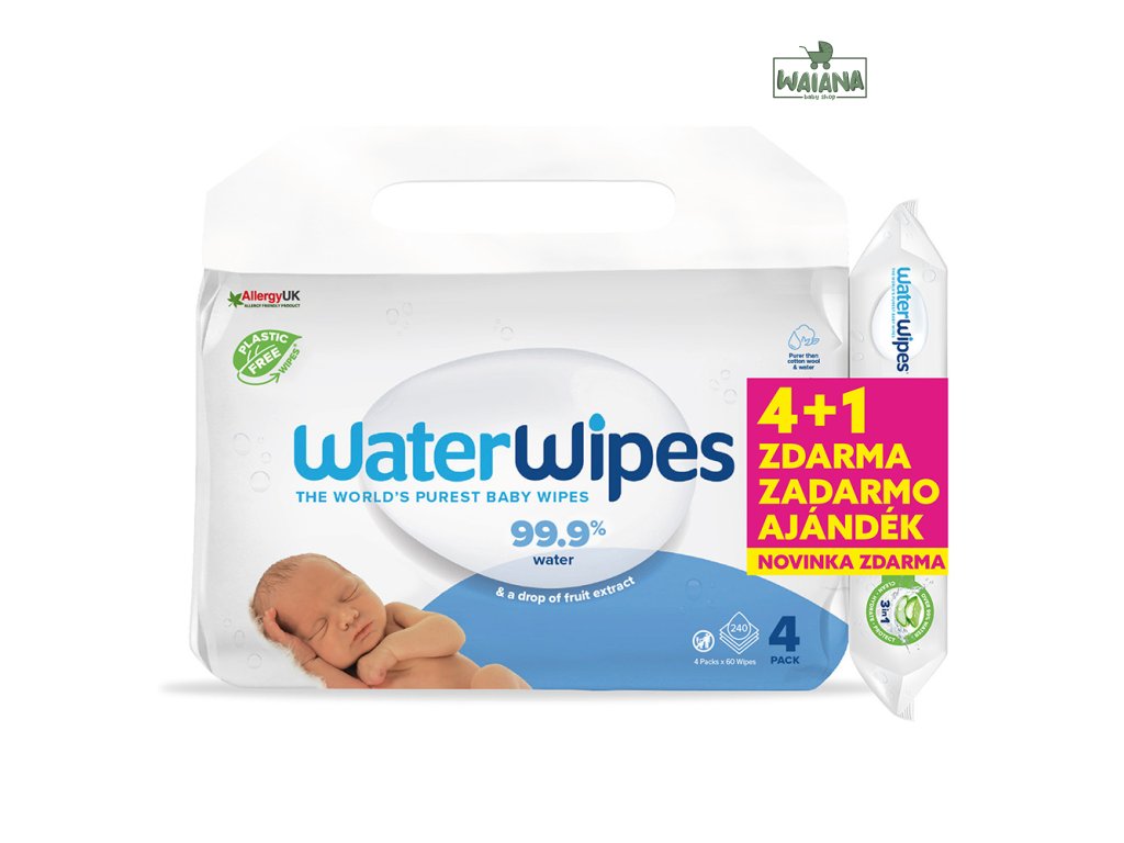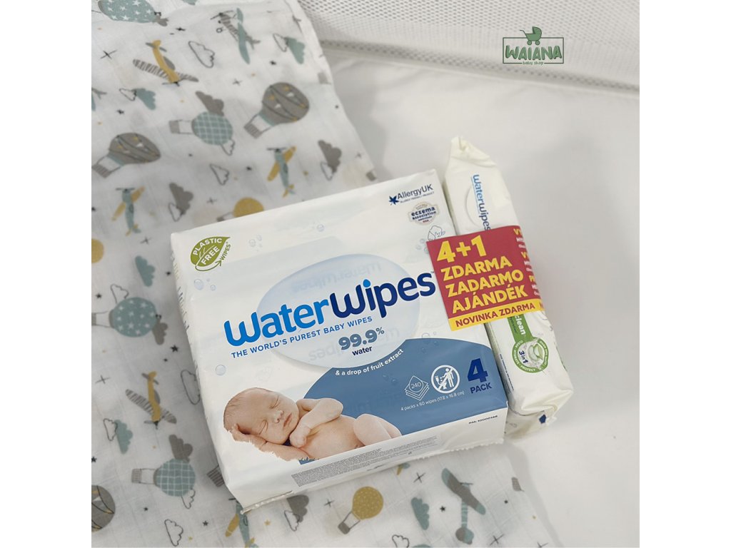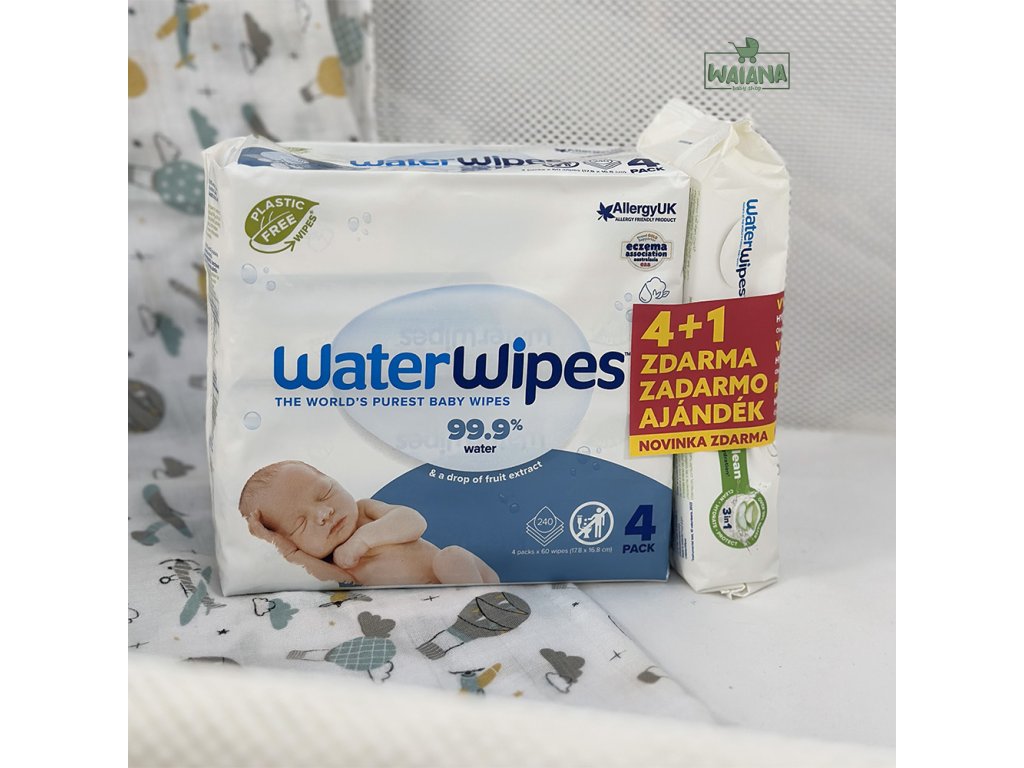 4x WATERWIPES Obrúsky vlhčené bez obsahu plastov 60 ks ( 240 ks ) + Hydrating clean obrúsky 60 ks ZA