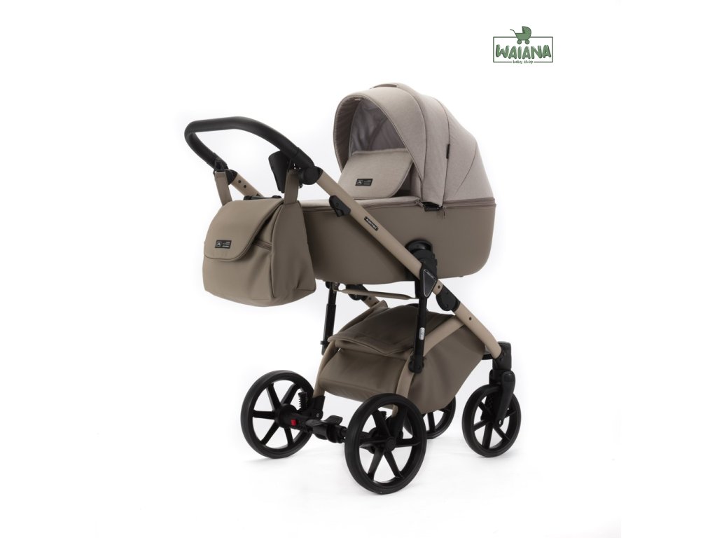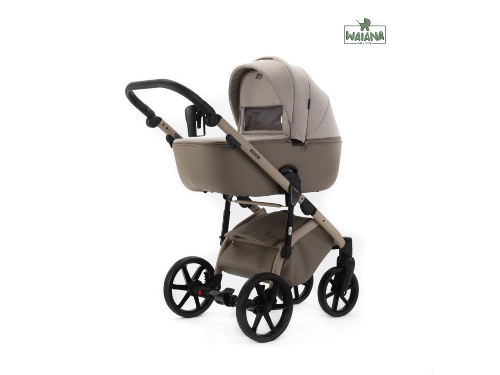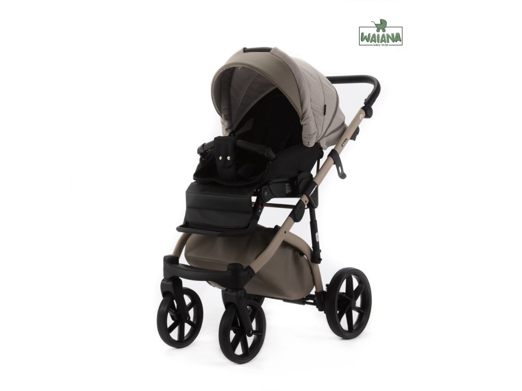 Kombinovaný kočík Adamex Nola v kolekcii Natura je cenovo dostupný model kočíka, ktorý budete zbožňovať. Kolekcia sa vyznačuje dokonale zladenými farebnými kombináciami látky, eko-kože, doplnkov a rámu kočíka