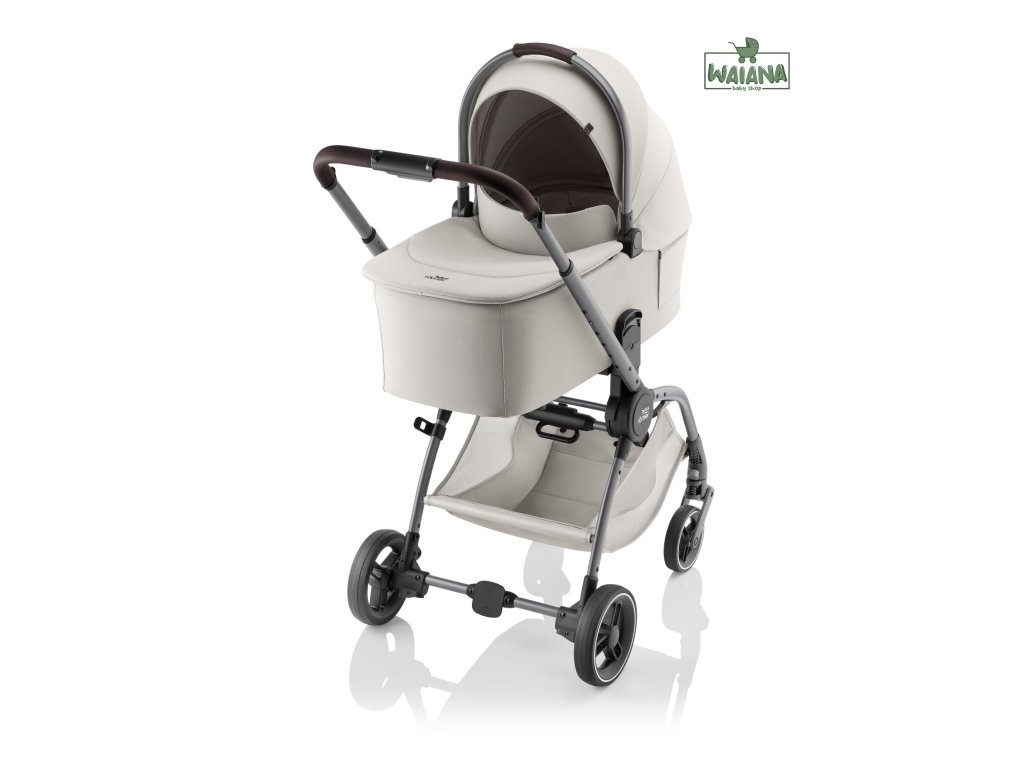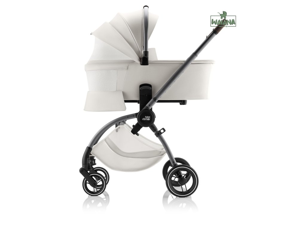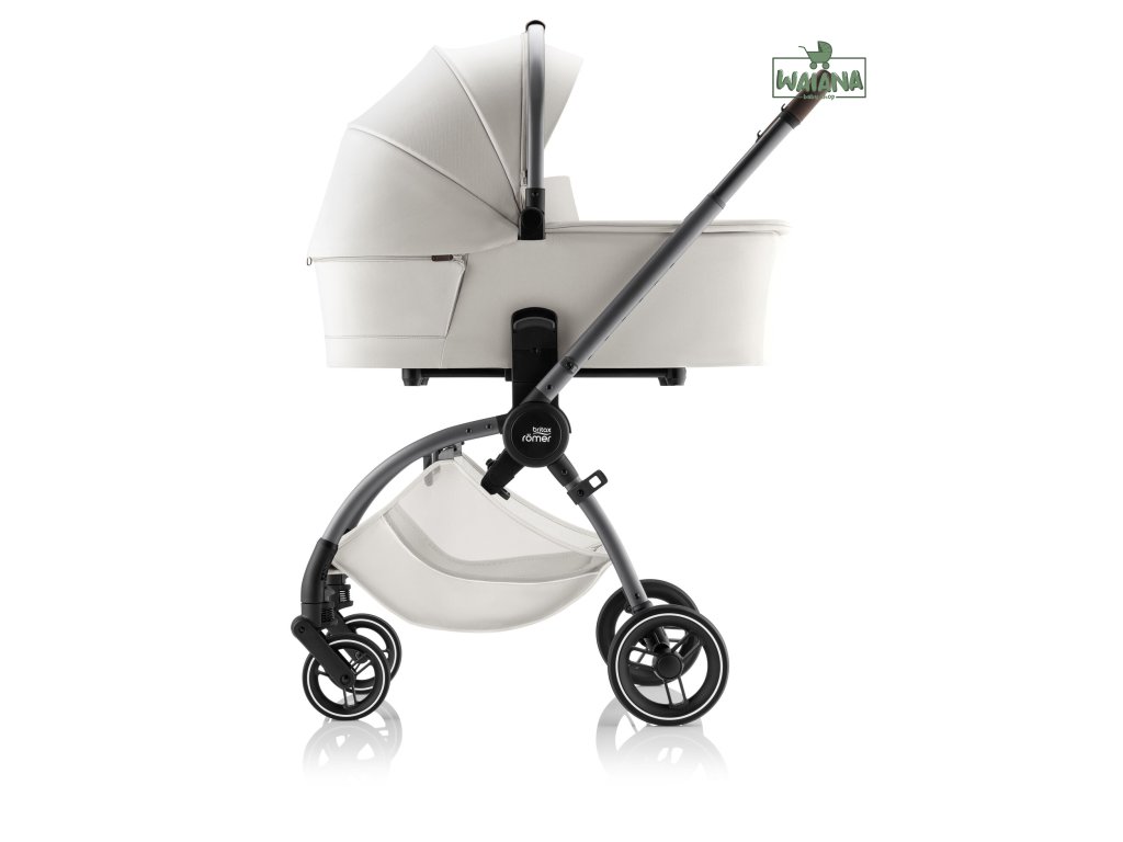 Športový kočík Britax Römer Rio, hlbokú vaničku Britax Römer Rio, autosedačku Baby-Safe Core, základňu Baby-Safe Core Base, pláštenku na kočík Rio a pláštenku na hlbokú vaničku Rio.