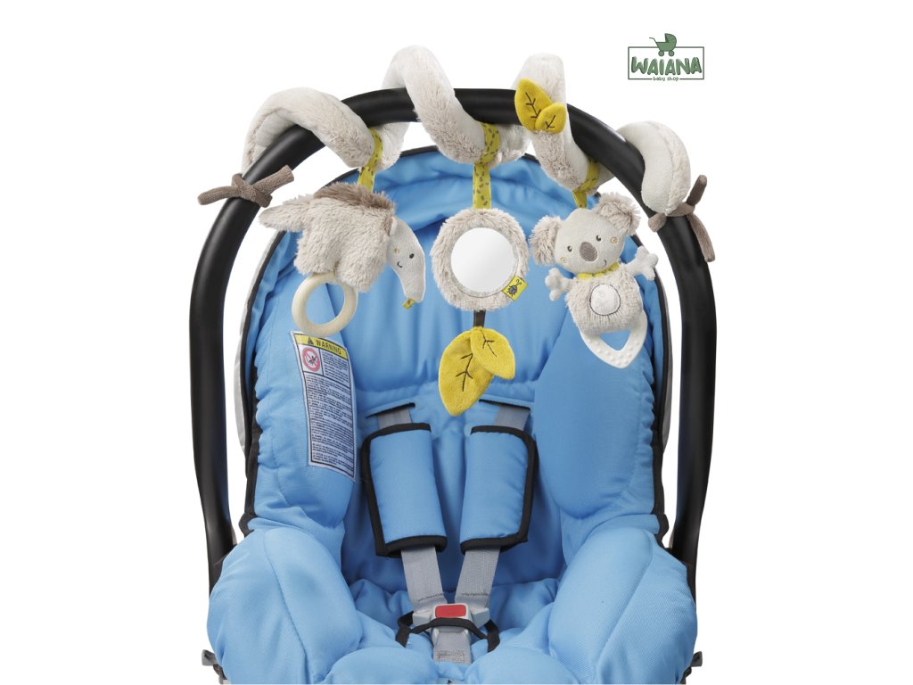 Aktivity špirála Australia je roztomilým doplnkom na hranie pre Vaše zlatíčko. Vďaka svojmu flexibilnému tvaru je možné ju využiť v kočíku, detskej postieľke, na cestách v aute, ale aj všade tam, kde to uznáte za vhodné. Obsahuje niekoľko prvkov, ktoré zamestnajú všetky vnemy dieťatka. Hrkálka zaujme zvedavé detské ušká, zrkadielko láka očká a využitie rôznych materiálov a tiež integrovaného hryzátka, sa postarajú o to, že hračka zamestná naozaj všetky zmysly Vášho maličkého.