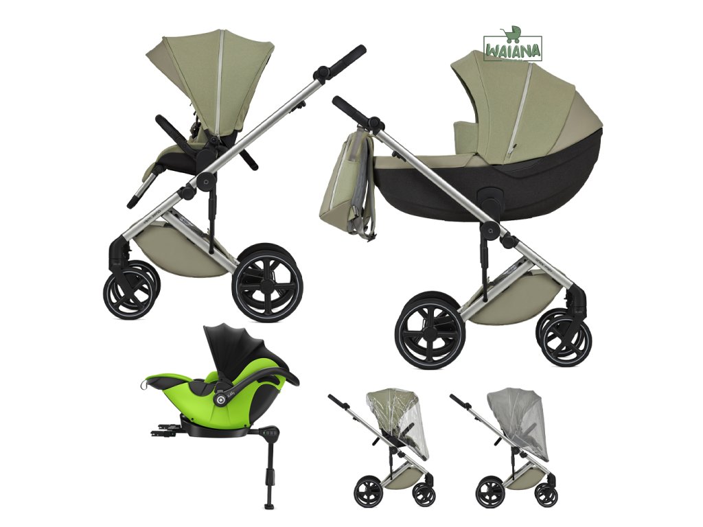 Obsahuje: vaničku, športovú časť, zvyšovacie adaptéry, elegantný batoh, pláštenku, moskytiéru, madlo. Súčasťou kočíka je tiež autosedačka Kiddy Evoluna i-size 2 spolu s isofix základňou.
