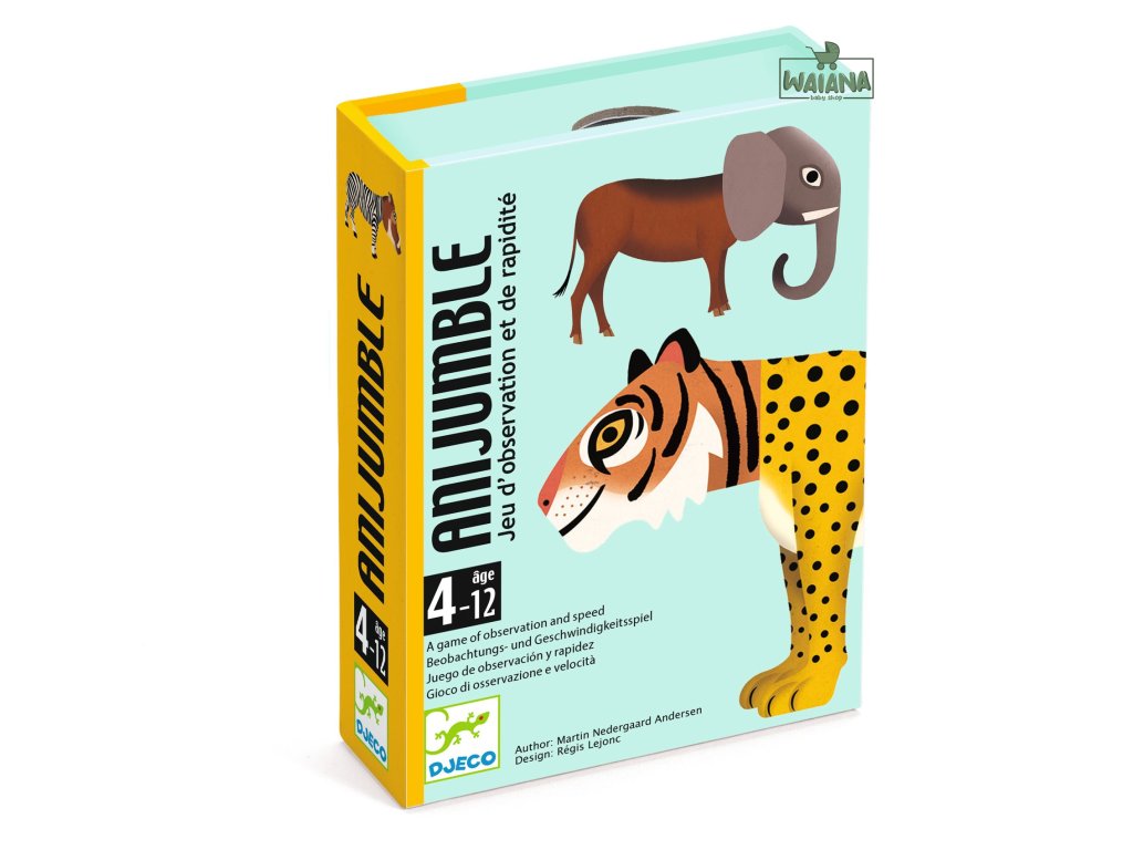 Anijumble: kartová hra na rýchlosť a postrehRýchla a zábavná kartová hra pre deti aj celú rodinuAnijumble od značky Djeco je dynamická kartová hra zameraná na rýchlosť, postreh a pozornosť. Úlohou hráčov je čo najrýchlejšie rozpoznať správne zviera z poprehadzovaných častí obrázkov na kartách. Hra ponúka krátke, svižné herné kolá plné napätia a smiechu a je vhodná na hranie doma aj na cestách.Prečo si vybrať Anijumble od Djeco:Kvalitné spracovanie a originálne ilustrácie značky DjecoJednoduché a rýchlo pochopiteľné pravidláDynamická hra zameraná na rýchlosť a postrehVhodná pre deti aj dospelýchKrátke herné kolá ideálne aj na cestovanieVhodná pre deti od 4 rokovEkologicky šetrné papierové materiály s ekologickým certifikátom FSC®Obsah balenia:45 kartičiek s ilustráciami zvieratPrehľadné pravidlá hryČo hra rozvíja u detí:Postreh a vizuálne vnímanieRýchlosť reakcií a schopnosť rozhodovaniaSústredenie a pozornosť na detailyLogické myslenieSociálne zručnosti a férovú hruAnijumble je skvelou hrou, ktorá zaručuje zábavu a rozvoj kľúčových schopností detí aj dospelých!