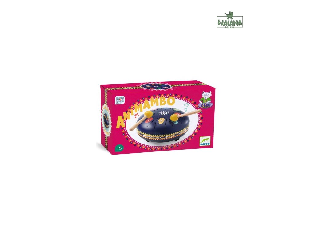 Animambo Kovový bubonObjavte zvuk a rytmus s indiánskym motívomFarebný kovový bubon od značky Djeco s 8 tónmi prináša deťom radosť z hudby a rytmu. Stačí udierať paličkami do jazykov a počúvať jemný, relaxačný zvuk. Ideálny pre prvé hudobné skúsenosti a rozvoj hudobného sluchu u detí od 5 rokov.Prečo si ho deti zamilujú?Intuitívny a ľahko hrateľný – každé dieťa zvládne hrať bez predchádzajúcich skúsenostíJemný a relaxačný zvuk podporuje koncentráciu a kreativitu8 jazykov zodpovedajúcich 8 tónom 1 jazyk = 1 nota = 1 očíslovaná a farebná nálepka poukazujúca na noty pre zahranie 4 hudobných skladiebGumový uzáver na spodku bubna umožňuje regulovať hlasitosť pre tichšie hranie.Prístup k 4 hudobným skladbám cez QR kód pre inšpiráciu a učenieRozvíja rytmus, sluch a prvé hudobné zručnosti detíObsah balenia:1 oceľový bubon (priemer 16 cm) s 8 jazykmi2 drevené paličky s gumenou špičkou (8,5 cm)2 obojstranné karty s notami (18 × 8,5 × 0,2 cm)