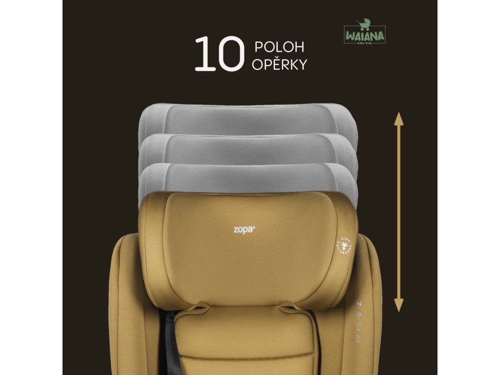 poistkou v prednej časti autosedačky. Opierka hlavy ponúka až 10 polôh