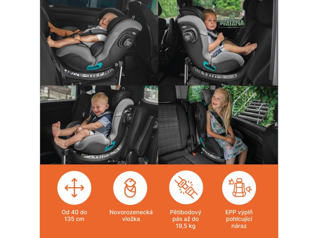 najnovšiu bezpečnostnú normu i-Size. Vhodná od narodenia do 135 cm.