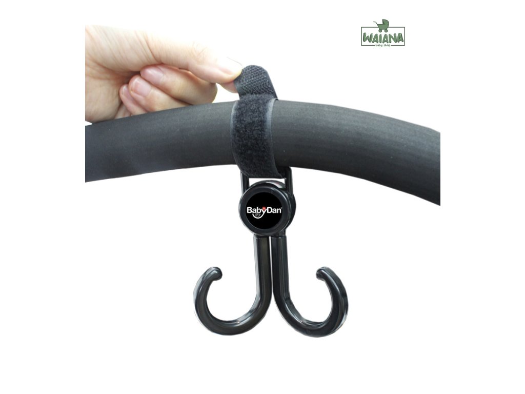 Nemá Vaša prebaľovacia taška riešenie pre upevnenie na kočík? Chcete ďalej používať svoju obľúbenú kabelku aj s kočíkom? Páči sa Vám kabelka, ale nemá vyriešené upínanie na kočík? Potom vyskúšajte univerzálny dvojitý háčiky od Babydanu. Je to perfektný spôsob ako upevniť tašku na kočík. Ľahko sa upevňuje pomocou pások zo suchých zipsov. Je dvojitý, a jednotlivé časti sú otočné.