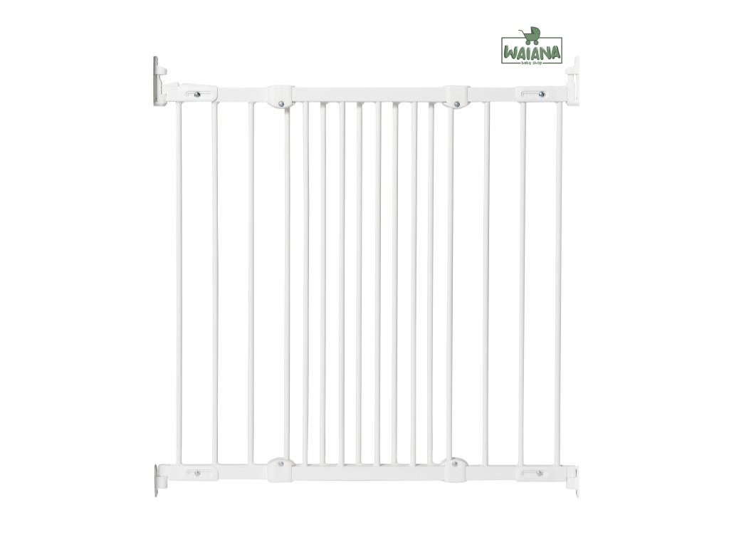 Flexi Fit je jedinečný a veľmi flexibilný inštalačný systém, ktorý sa hodí pre takmer akýkoľvek otvor. Nástenné kovanie je možné otočiť, a zábrana tak môže byť namontovaná buď vnútri rámu dverí alebo zvonku. Ak je inštalovaný dovnútra rámu dverí, je možné dvierka otvoriť v oboch smeroch, a to len jednou rukou. Otočné držiaky taktiež umožňujú montáž zábrany aj pod šikmým uhlom. Týmto spôsobom sa zábrana zmestí takmer do všetkých typov otvorov. Unikátna funkcia Quick Release s detskou poistkou uľahčuje a urýchľuje montáž a demontáž.