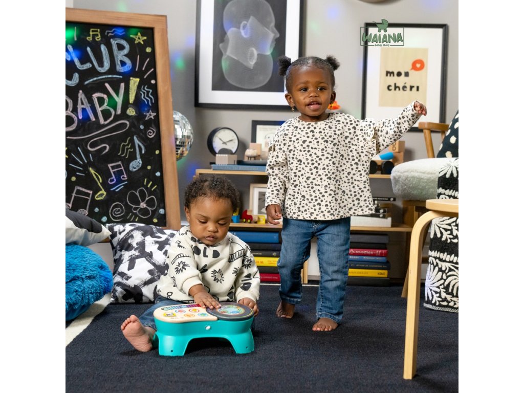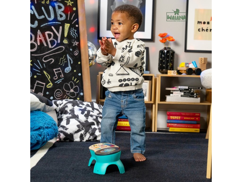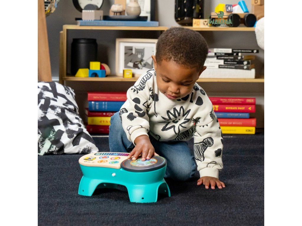 Tvorte hudbu, skúmajte zvuky a učte sa rytmom s gramofónom Baby Einstein + Hape DJ Discovery Magic Touch. 50 melódií a zvukov umožňuje bábätku pustiť sa do skladieb a podporovať jemnú motoriku. S touto hudobnou hračkou, ktorá odmeňuje detskú zvedavosť každým ťuknutím a otočením, bude bábätko rado tancovať a objavovať hudbu. Technológia Magic Touch pomáha dieťaťu ľahko tvoriť hudbu a podporuje pochopenie príčin a následkov. Na gramofóne, ktorý je vyrobený najmä z dreva s certifikátom FSC, môže dieťa pozastaviť a prehrať vopred nahrané melódie, zmiešať melódie alebo roztočiť platňu, aby zrýchlilo tempo – presne ako skutočný DJ! Zvuky tlačidiel pomáhajú každej melódii znieť skvele a ovládanie hlasitosti robí hudbu zábavnou pre každého! Pre deti vo veku od 6 mesiacov do 3 rokov.