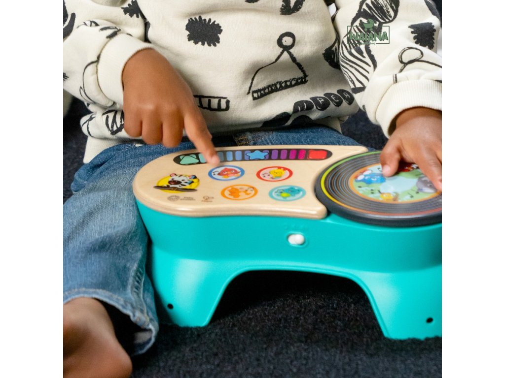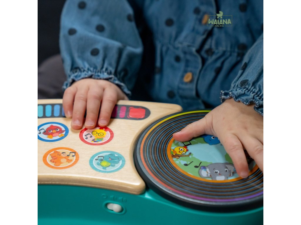 - Baby Einstein + Hape DJ Discovery Magic Touch Gramofón je hudobná hračka, ktorá pomáha deťom vo veku od 6 mesiacov do 3 rokov ľahko vytvárať hudbu a pochopiť príčinu a následok.