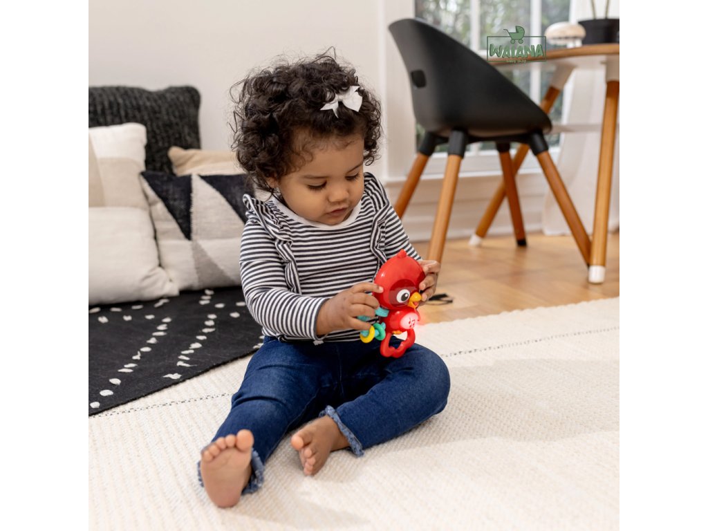 Táto pútavá hračka zabaví dieťatko na cestách, keď skúma jedinečné textúry, klasické melódie, zvuky vtáčikov a svetielka. Dieťatko si môže rozvíjať jemné motorické zručnosti a objavovať príčinu a následok, keď stláča a skúma vlastnosti hračky.