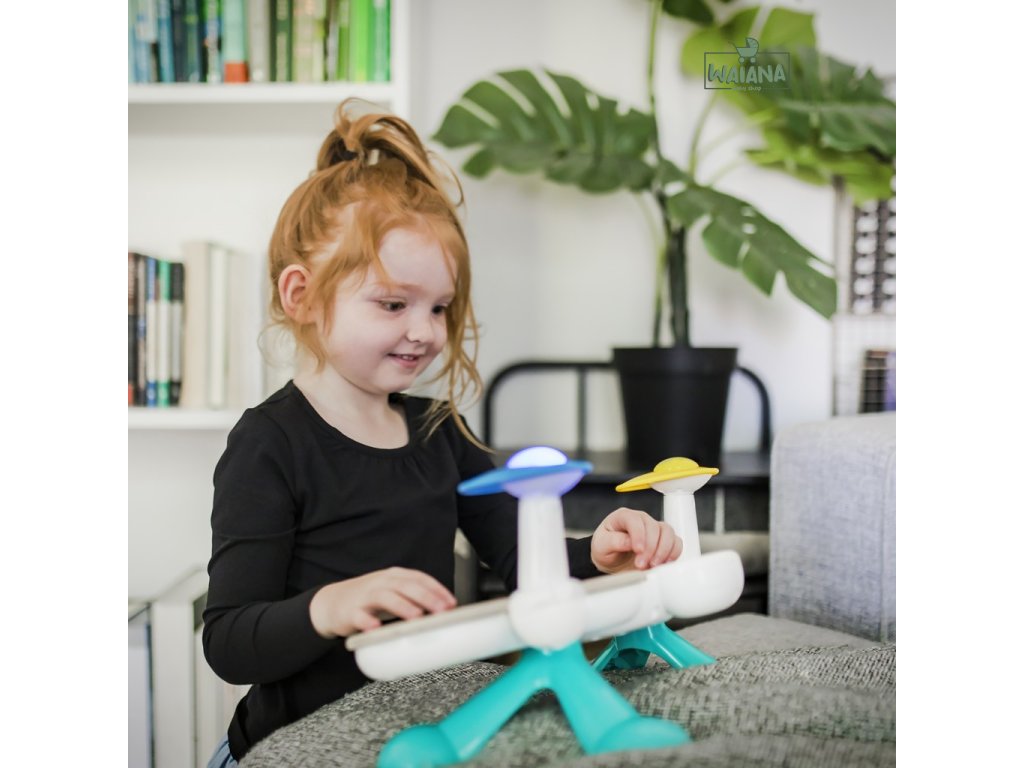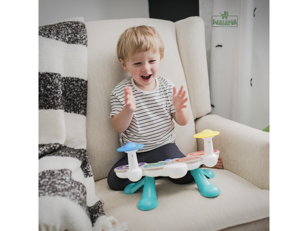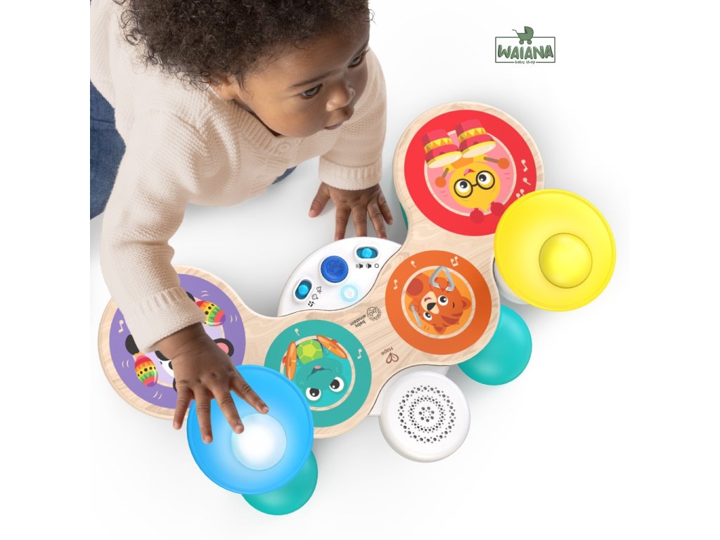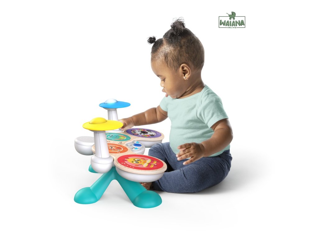 - Podnecuje spoločné hranie a spoluprácu – Bábätko môže hrať na bubny samo, alebo spolu s priateľmi a súrodencami vďaka bezdrôtovému pripojeniu k iným nástrojom z rady Together in Tune™ Connected Magic Touch™ v dosahu.