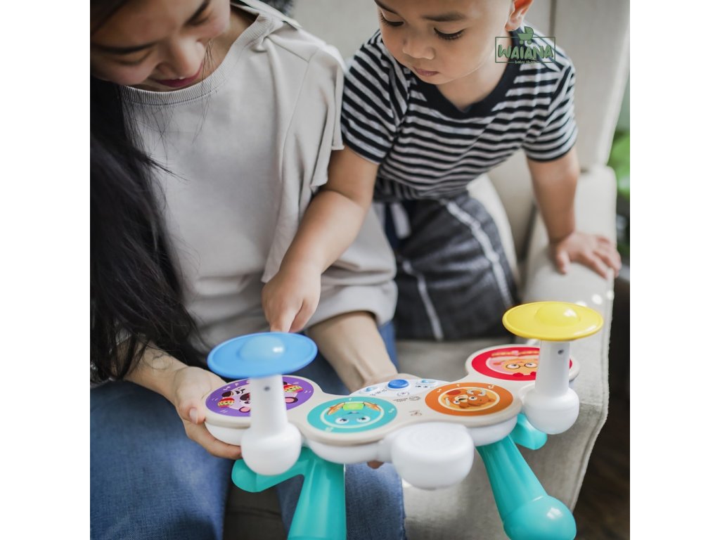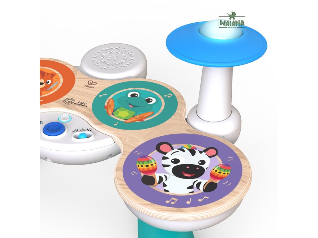 Chcete aby sa vaše deti naučili hrať spolu v zhode? Together in Tune Drums™ je hudobná hračka pre batoľatá a dojčatá, ktorá im umožňuje hrať na bubny samostatne alebo spolu so súrodencami a priateľmi. Bezdrôtovo sa pripája k ostatným nástrojom z kolekcie Together in Tune™ v dosahu a automaticky sa páruje, čím vytvára nádhernú hudbu, ktorú si mama a otec užijú rovnako ako ich deti. Bezpečné bezdrôtové spojenie medzi bicou súpravou, klavírom a gitarou funguje ako vysielačka prostredníctvom rádiových vĺn. Táto súprava bubnov, ktorá vznikla v spolupráci medzi Hape™ a Baby Einstein™, je bezpečná pre deti a podporuje rozvoj jemných motorických zručností. Technológia Magic Touch™ spája trvanlivosť a hodnotu klasickej drevenej hračky s najnovšou technológiou hudobných hračiek súčasnosti. Dokonca aj najjemnejšie poklepanie na maľované bubnové plochy vydáva skutočné zvuky bubna. Vďaka 4 režimom (Discover Mode - Objav; Perform Mode - Predveď; Playful Mode – Zabav sa; Band Mode - Kapela) a 10 populárnym melódiám, dáva táto hračka dieťaťu možnosť vytvárať si vlastné rytmy, vrstviť melódie ale aj vytvárať jednoduché zvuky, a tak vytvárať svoje vlastné pesničky. Ak hľadáte hudobnú hračku ako darček na oslavu bábätka, alebo na prvé narodeniny, táto je tá správna. Drevený dizajn bez gombíkov uľahčuje čistenie bubnovej súpravy. Zahŕňa ovládanie hlasitosti Vypnúť/Nízka/Vysoká. Vhodné pre batoľatá a deti od 12 mesiacov.