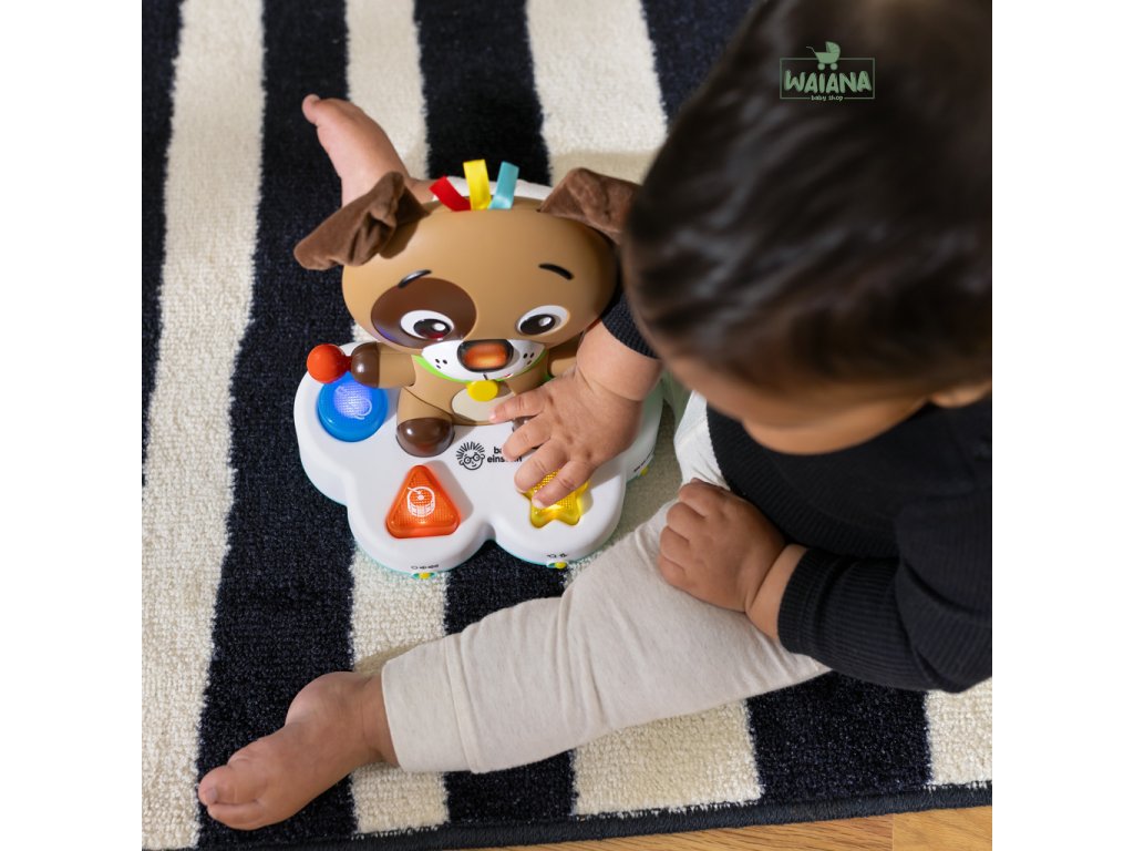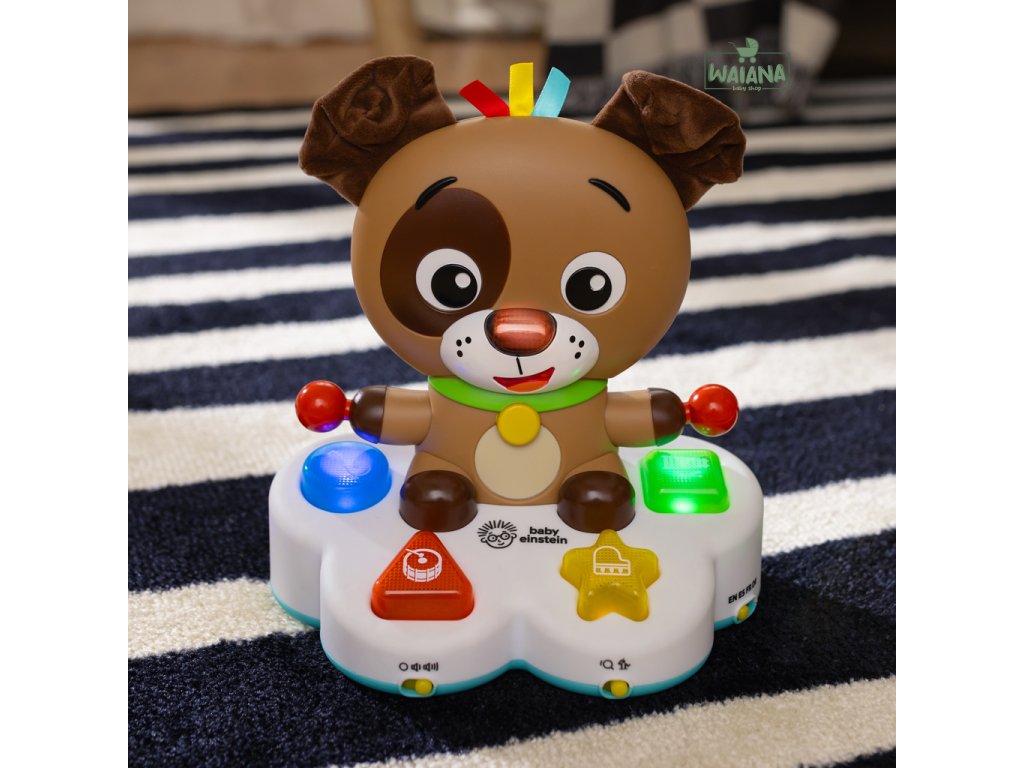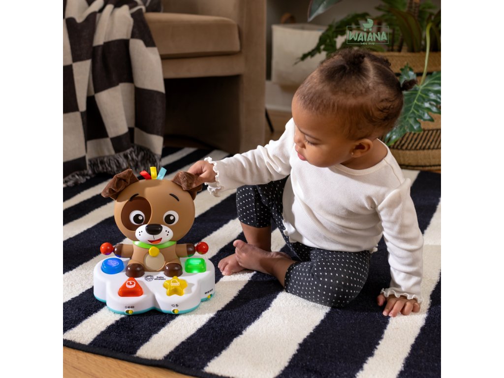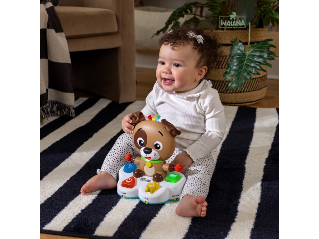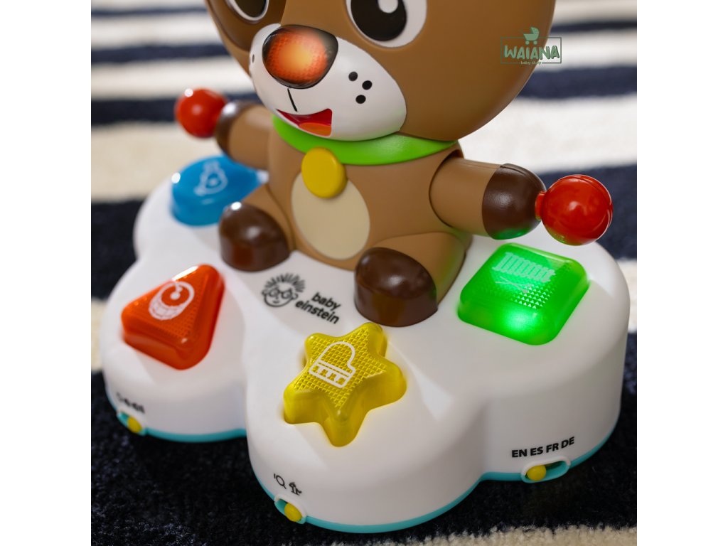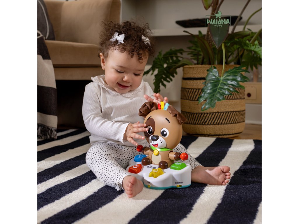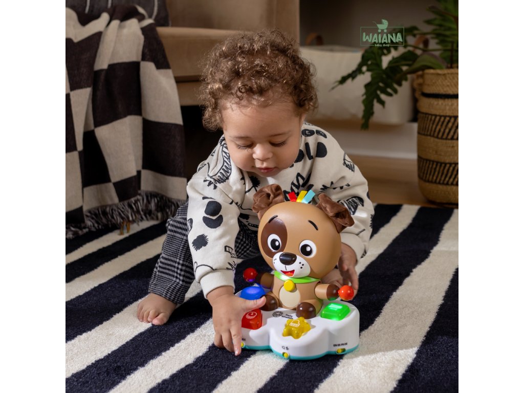 Stlačte Deanovu hlavu, aby ste videli, ako sa jeho ruky pohybujú hore a dole a jeho nos sa rozsvieti, čo inšpiruje k objavovaniu príčin a následkov a jemnej motoriky. Medzi ďalšie pútavé, multisenzorické funkcie patria 2 zvrásnené uši a 3 zmyslové stužky na hmatové objavovanie.