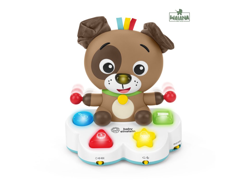 Naučte sa farby, tvary a nástroje s hudobnou vzdelávacou hračkou Baby Einstein Drum & Learn Dean. Táto interaktívna, multisenzorická hračka zapája dieťa pomocou rozsvietených tlačidiel, fráz a klasických melódií, aby pomohla dieťaťu objavovať farby, tvary a nástroje pri každom stlačení.