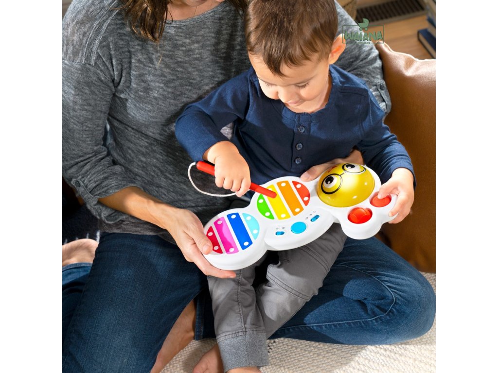 Osem farebných klávesov Magic Touch reaguje len na jemné ťuknutie, čo umožňuje deťom ľahko objavovať hudbu v dvoch režimoch. Skladajte originálne piesne alebo si vypočujte vopred nahrané melódie. Okrem hudby xylofón zapája oči a prsty dieťaťa ďalšími zmyslovými prvkami. Dva poppery pomáhajú dieťaťu precvičovať jemnú motoriku.