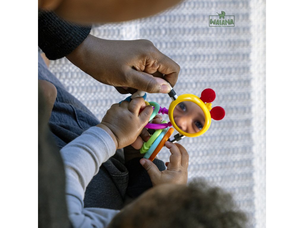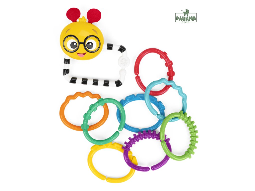 Zaujmite detské očká, rúčky aj myseľ so senzorickou hračkou Baby Einstein Cal’s Connectors. Táto sada 8 farebných prepojovacích krúžkov podporuje rozvoj jemnej motoriky a zmyslové vnímanie už od narodenia. Každý krúžok má inú textúru, ktorú si bábätko zamiluje pri skúmaní dotykom. Hračka je inšpirovaná húsenicou Calom z populárnych relácií a knižiek Baby Einstein. Vďaka zrkadielku na sebapoznávanie sa dieťatko zabaví aj samo, zatiaľ čo kontrastné farby (vrátane čiernobieleho krúžku) stimulujú zrak. Premeňte každodenné prechádzky a chvíle hrania na zábavnú a zmysluplnú aktivitu s Baby Einstein Cal’s Connectors!