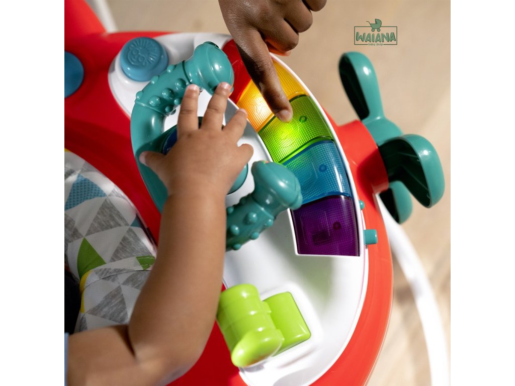 Skákadlo 2v1 umožní dieťatku pilotovať lietadlo a prežiť viaczmyslové dobrodružstvo s viac ako 20 melódiami, zvukmi, svetlami a nastaviteľným sedadlom so 4 výškovými polohami, ktoré sa otáča o 360 stupňov, a ďalšími funkciami.