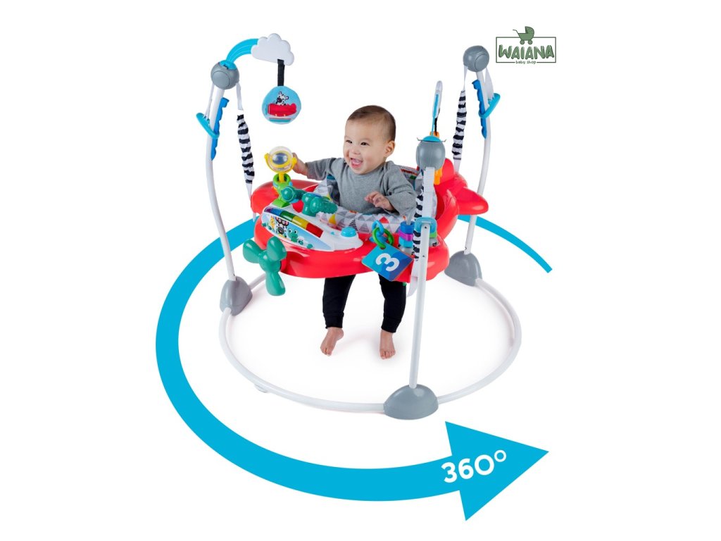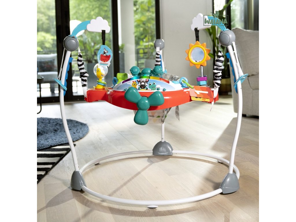 - skákadlo Baby Einstein Ocean Explorers Airplane Adventure s motívom lietadla, odmeňuje skoky dieťaťa hudbou a svetlom a rozvíja tak jeho hrubú motoriku