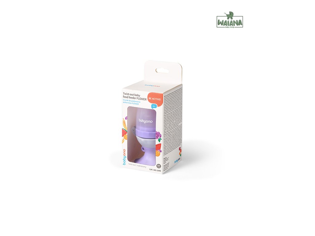 BABYONO Cumlík silikónový na kŕmenie Flower violet 6m+
