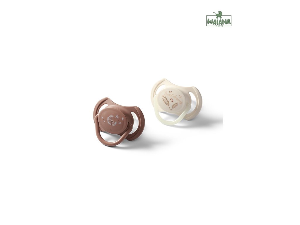 Symetrický silikónový cumlík upokojí vaše bábätko a dopraje vám chvíľku oddychu. Sploštená špička po oboch stranách sa dokonale prispôsobí ústam dieťaťa a podporuje správny vývoj chrupu a polohu jazyka. Profilovaný štítik s otvormi umožňuje voľné dýchanie nosom a zabezpečuje cirkuláciu vzduchu okolo úst. Náustok je vyrobený z hypoalergénneho, bezpečného silikónu, ktorý je odolný voči poškodeniu a neobsahuje BPA. Súprava obsahuje 2 cumlíky pre deti vo veku 18+ mesiacov – jeden na denné použitie a jeden so svietiacou rúčkou, ideálny na nočné upokojenie.