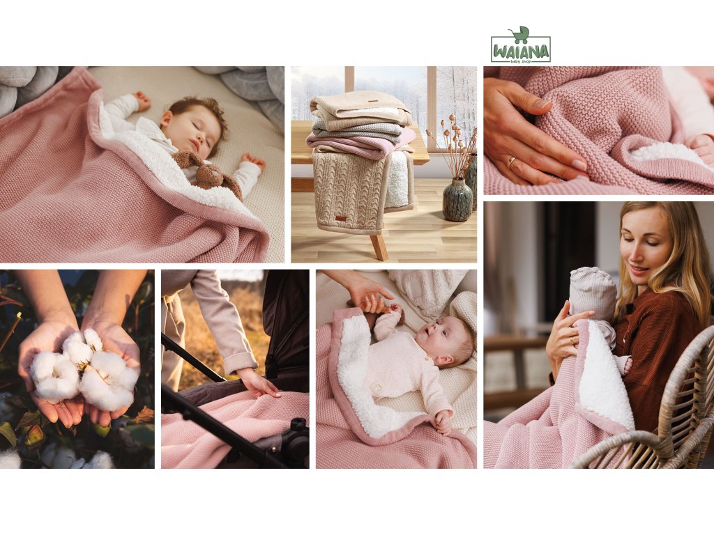Táto dvojvrstvová deka je ideálnou voľbou pre chladnejšie dni. Vrchná vrstva je vyrobená z prírodnej bavlny – jemnej a bezpečnej pre citlivú pokožku dieťaťa. Spodná strana je podšitá hustou sherpa látkou (flísom), ktorá pripomína jahňaciu kožušinu a výborne izoluje teplo. Deka nedráždi pokožku, vytvára pocit bezpečia a pohodlia, takže vaše dieťa sa bude cítiť ako v mäkkom, teplom obláčiku. Ideálna pre novorodencov, dojčatá aj staršie deti – doma, na prechádzkach či na cestách.