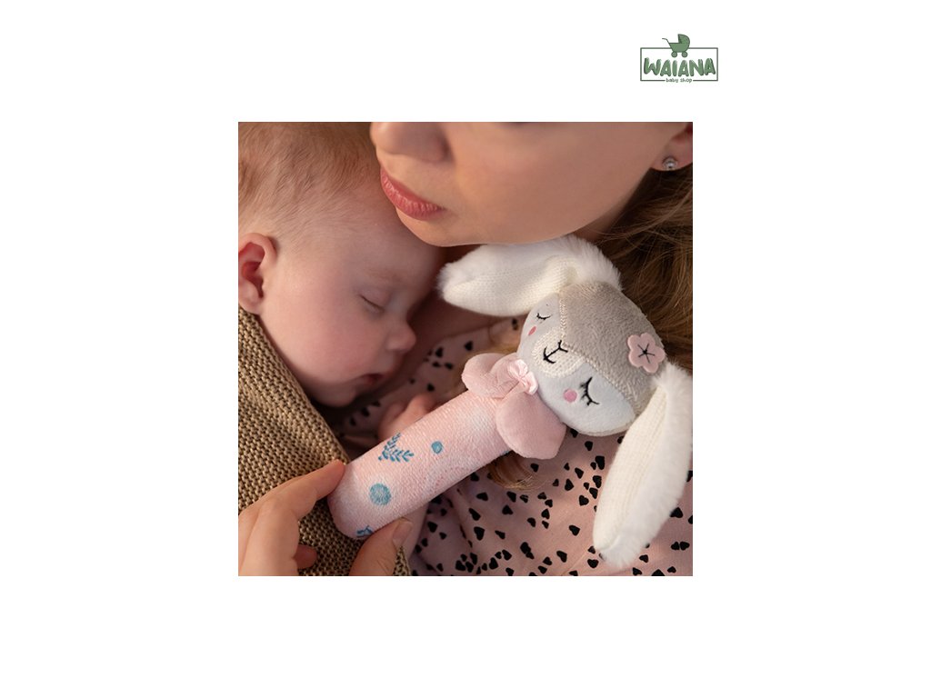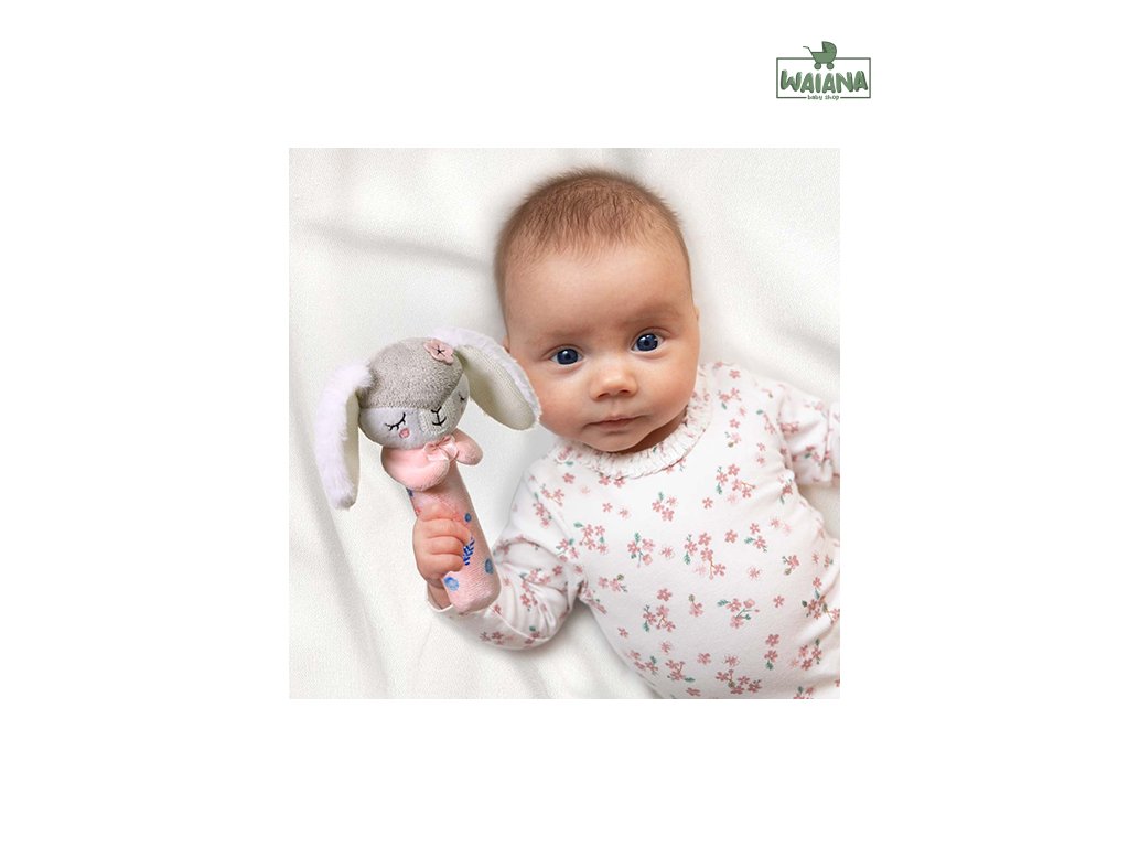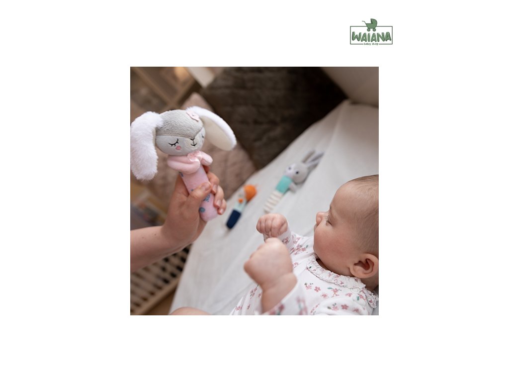 Mäkká pískajúca zajačica stimuluje zmysly Vášho dieťatka. Stačí jemný tlak alebo zatrasenie, aby sa aktivoval jemný zvuk a hrkálka. Môže povzbudiť dieťatko k hre a objavovaniu vecí, ako aj umožniť mu precvičovať si zručnosti pri chytaní a hraní. Hračka stimuluje zmysly dieťaťa: sluch, zrak a hmat. Tento senzorický výrobok môže podporovať zrak, sluch a motorické zručnosti Vášho dieťatka od prvých týždňov jeho života. Tento zajačik sa stane obľúbenou plyšovou hračkou pre Vaše dieťatko. Dieťatko môže vidieť, čo sa stane, keď hračku chytí alebo ňou zatrasie. Takto učí vzťahom príčiny a následku.