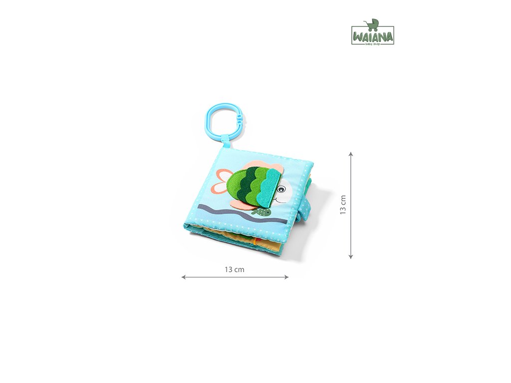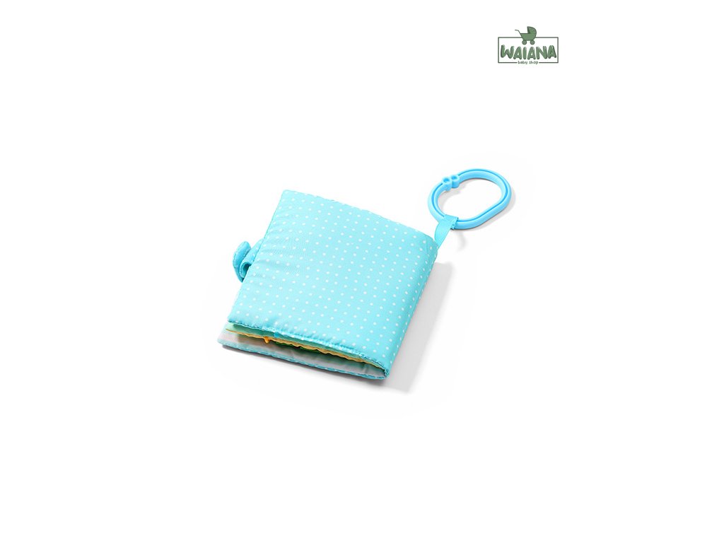 Knižka Babyono je dodávaná s praktickým úchytom na jednoduché pripevnenie na postieľku, kočík, autosedačku a pod.