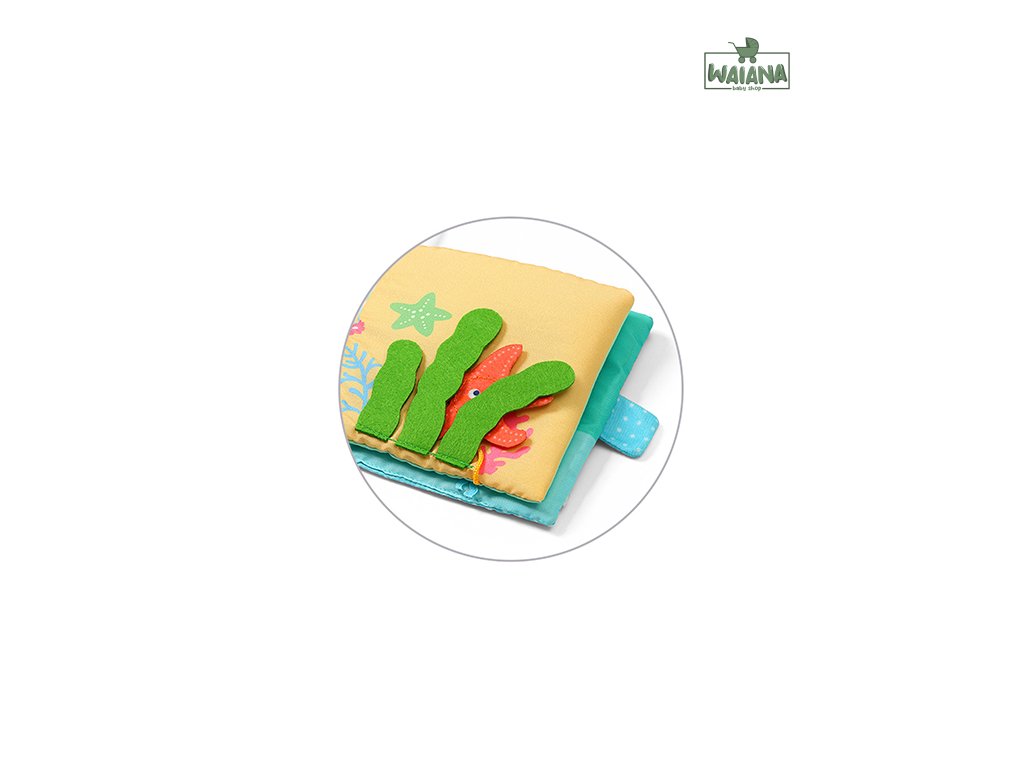 Senzorická knižka s motívom mora umožní dieťatku objaviť fascinujúci podmorský svet. Stimuluje zmyslový vývoj dieťatka od prvých dní jeho života. Rôzne materiály a textúry stimulujú hmat. Časti látky ako napríklad plsť sú mäkké a bezpečné. Ostávajú odolné a trvácne aj po intenzívnom hraní a skúmaní. Odnímateľný suchý zips a skryté časti vzbudzujú u detí zvedavosť a povzbudzujú ich, aby objavovali záhady samé. Podporujú sústredenie a logické myslenie.