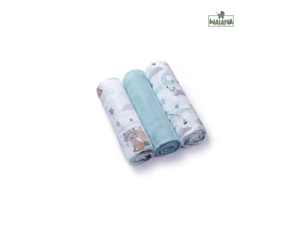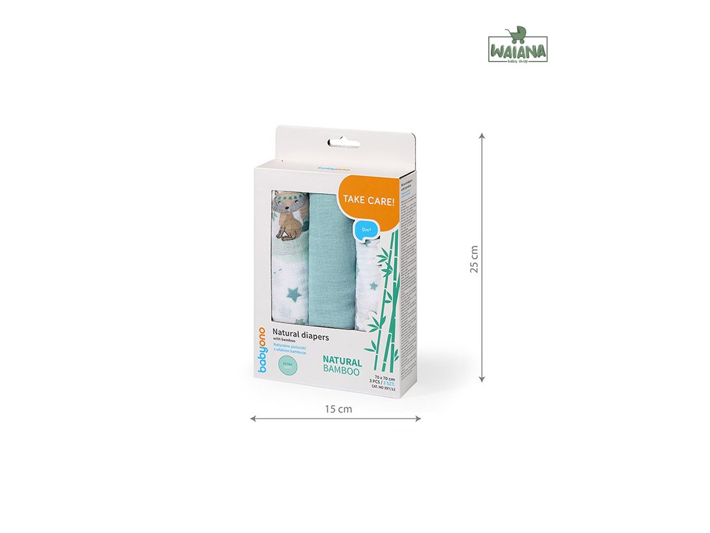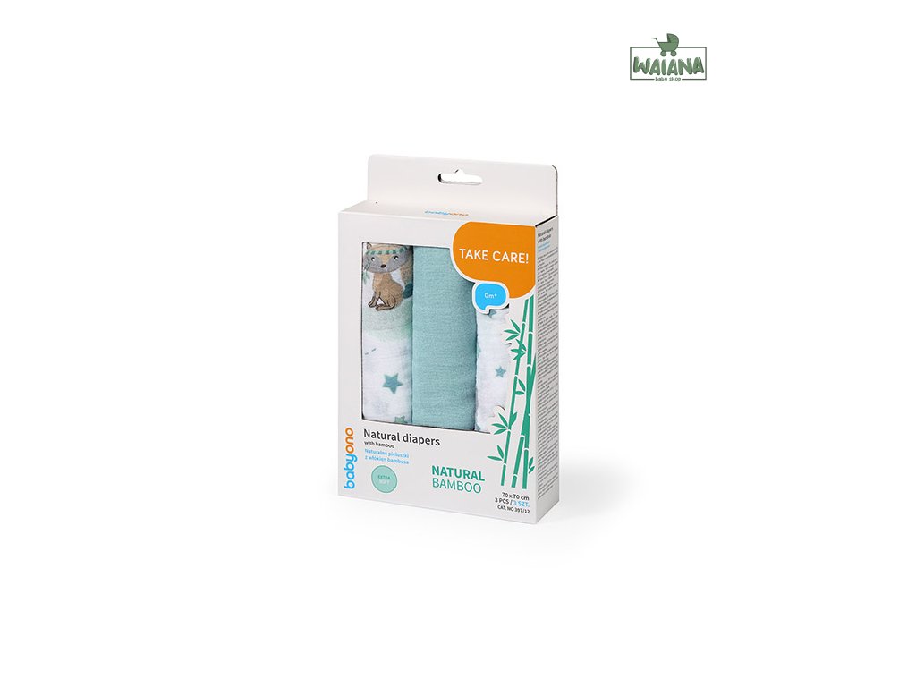 BABYONO Plienky bambusové 3 ks Blue, 70x70 cm