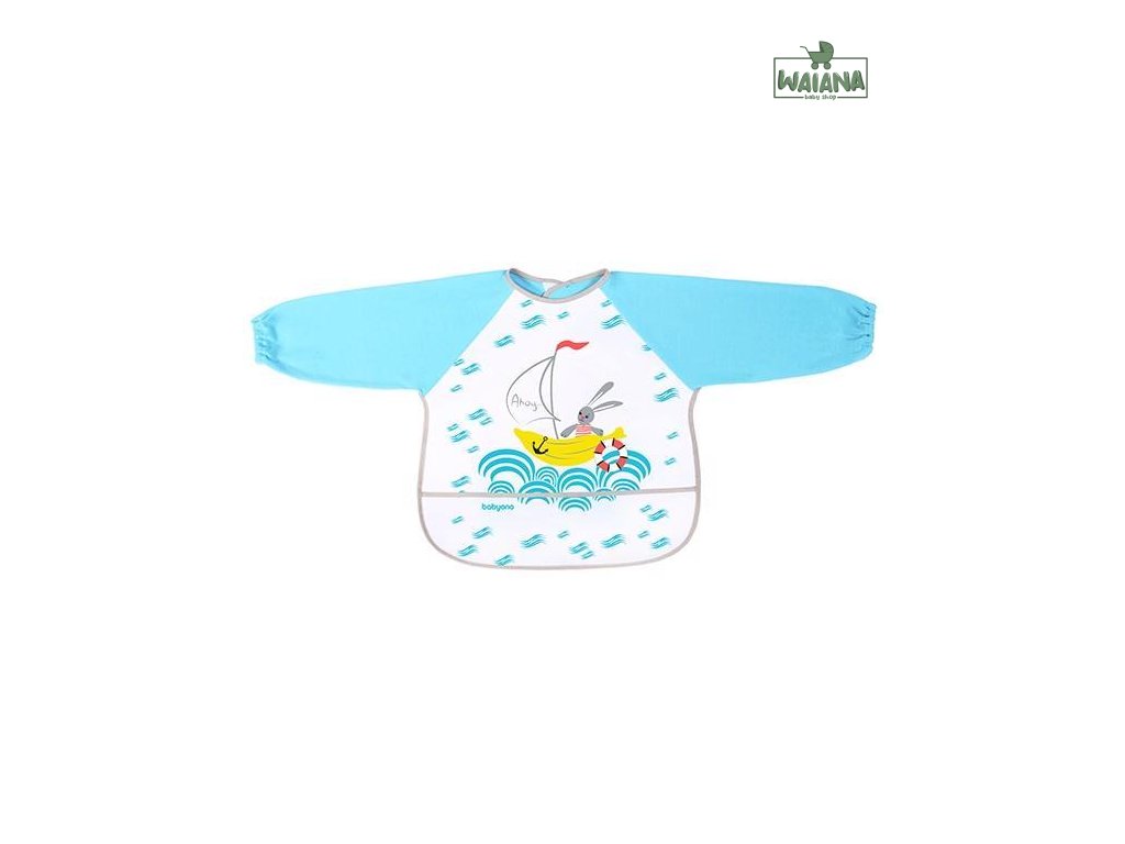 BABYONO Podbradník s dlhým rukávom modrý 24m+, 35x40 cm