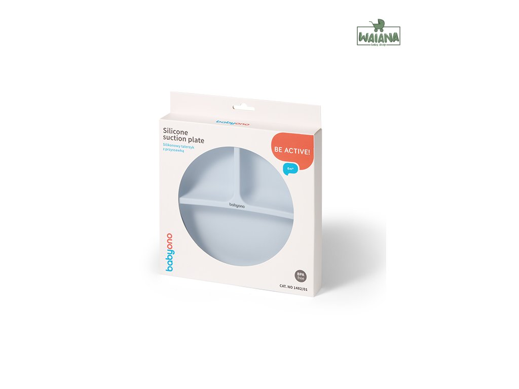 BABYONO Tanier silikónový s prísavkou - blue 6m+