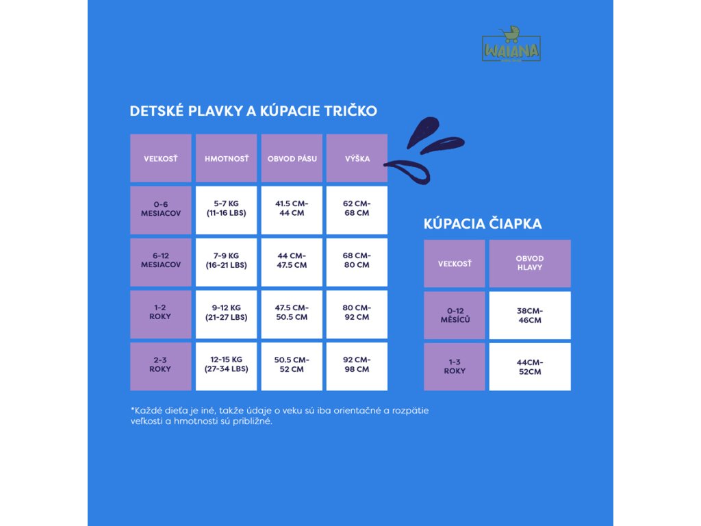 Dostupné v 2 veľkostiach: Veľkosť S/M – do 12 mesiacov (obvod hlavičky 38,1 – 45,72 cm). Veľkosť L/XL – 1–2+ rokov (obvod hlavičky 43,18 – 50,8 cm).