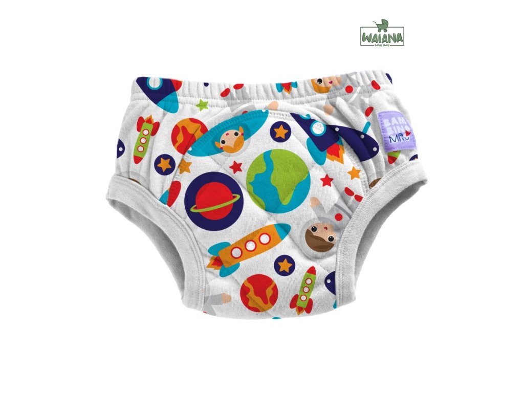 Nepriepustná vrstva spolu s absorpčnou vrstvou čiastočne chráni pred znečistením okolia. Pomáhajú zrýchliť proces učenia sa na nočník, avšak nenahradzujú plienky. Môžete ich dať dieťaťu ako darček. Dodajú dieťaťu pocit, že už vyrástlo a plienky nepotrebuje. Nepoužívajte ich skôr ako je dieťa na prechod na nočník pripravené. Učiace plienkové nohavičky síce obsahujú absopčnú vrstvu, ktorá zachytí menšie množstvo moču, ale nenahradzujú plnohodnotne viacvrstvovú plienku s nohavičkami. Sú určené pre dieťa, ktoré už prechádza na nočník a občas sa mu prihodí nepríjemná príhoda. V učiacich plienkových nohavičkách vlhkosť ihneď ucíti, môže si ju uvedomiť a posadiť sa na nočník. Učiace plienkové nohavičky nedávajte dieťaťu na noc či na spanie a pokiaľ nemáte inú možnosť vložte do nich ešte ďalšiu viacvrstvovú plienku Bambino Mio, ktorá doplní absorpčnú kapacitu. Pred prvým použitím učiace plienkové nohavičky minimálne dvakrát predperte.