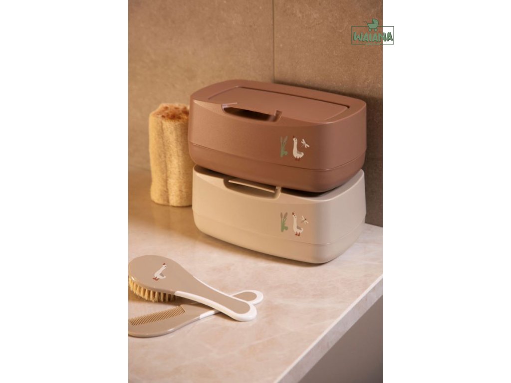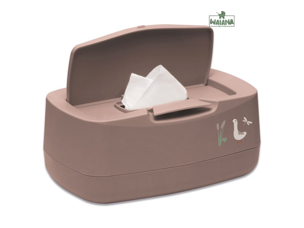 Univerzálny box na vlhčené obrúsky v modernom dizajne s ochranou proti vyschnutiu. Krásny doplnok na prebaľovaciu komodu. Je ľahko uzatvárateľný, aby sa predišlo vysychaniu obrúskov. Box je možné otvoriť jednou rukou. Špeciálne otváranie sa ďalej postará, že ďalší obrúsok budete môcť bez námahy vytiahnuť von a ihneď použiť.