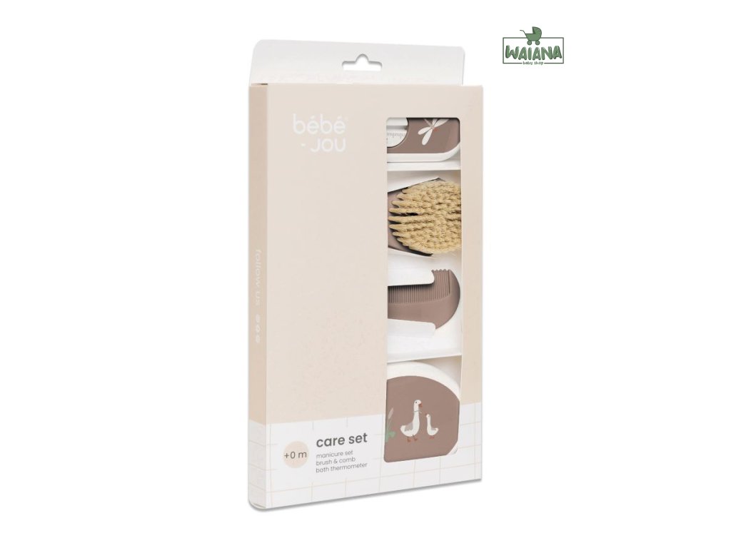 Roztomilá štvordielna darčeková sada poteší novopečených rodičov hneď niekoľkokrát. Prvýkrát, keď ju dostane a potom zakaždým, keď ju budú používať. Nie je to len krásny darček, ale aj veľmi praktická, krásne zabalená sada. Obsahuje kúpací teplomer, manikúru, hrebeň a kefu.