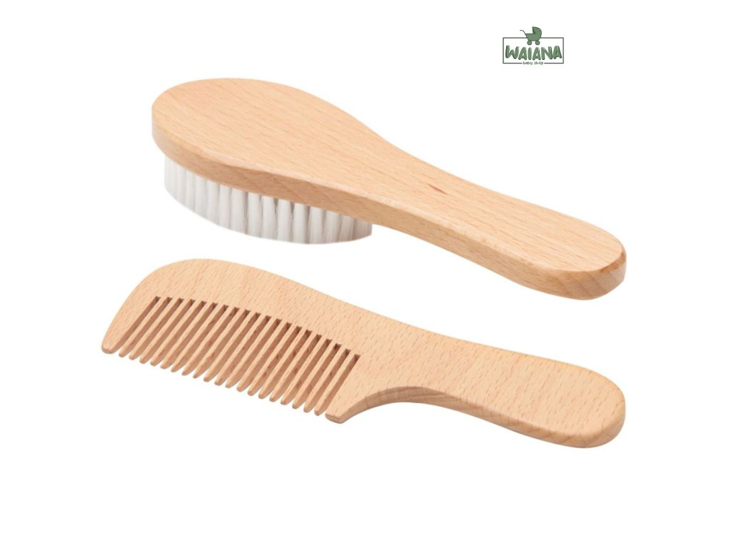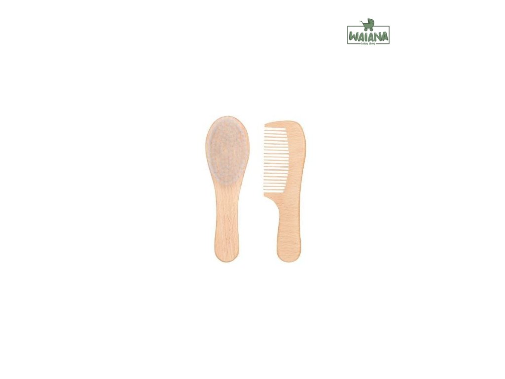 Táto štýlová a praktická sada sa skladá z hrebeňa a kefy, ktoré sú špeciálne navrhnuté pre citlivú pokožku hlavy dieťaťa. Výrobky sú vyrobené z odolného bukového dreva, ktoré je známe svojou pevnosťou a krásou. Vlas kefy je jemný k pokožke hlavy vášho dieťaťa. Vďaka tejto kombinácii prírodných materiálov a mäkkých štetín môžete jemne česať a kefovať vlásky svojho dieťatka.
