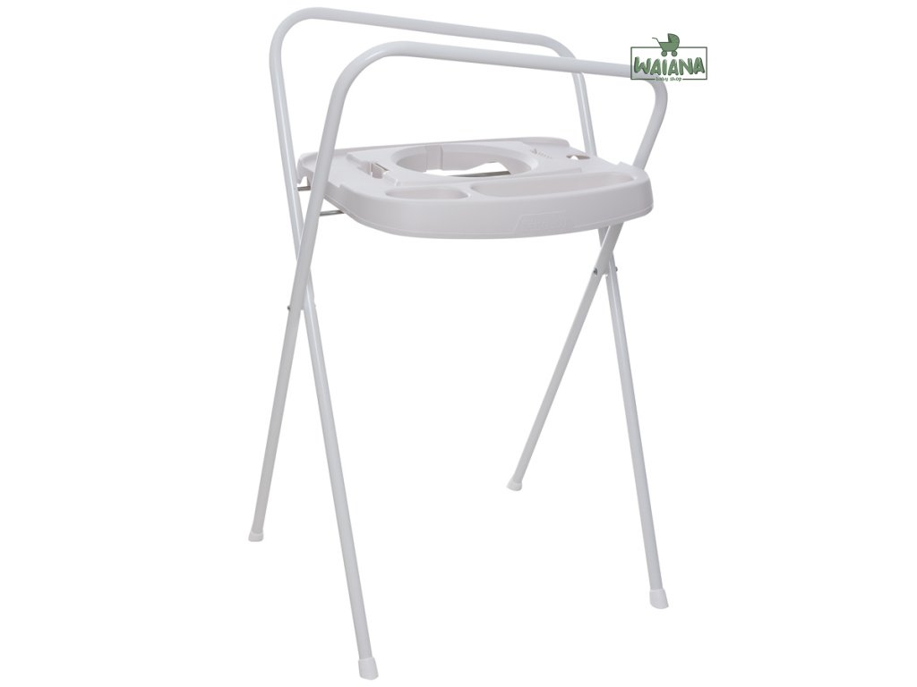 Stojan má výšku 103 cm, otvor na zavesenie uteráka a vytvorené miesto na mydlo. Je skladacia a je vybavený inovatívnym Click systémom. Len 2 kliknutia a vanička je ľahko a bezpečne umiestnená na kúpací stojan. Rovnako ľahko môže byť pomocou kliknutia vanička zo stojana odpojená. Tiež kúpací kýblik Bébé-Bubble je možné na tento stojan umiestniť, takže vám stačí kúpiť len 1 stojan a naň umiestniť najprv Bébé-Bubble a potom vaničku.