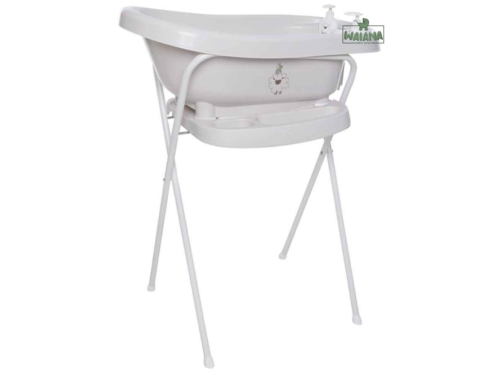 Stojan má výšku 103 cm, otvor na zavesenie uteráka a vytvorené miesto na mydlo. Je skladacia a je vybavený inovatívnym Click systémom. Len 2 kliknutia a vanička je ľahko a bezpečne umiestnená na kúpací stojan. Rovnako ľahko môže byť pomocou kliknutia vanička zo stojana odpojená. Tiež kúpací kýblik Bébé-Bubble je možné na tento stojan umiestniť, takže vám stačí kúpiť len 1 stojan a naň umiestniť najprv Bébé-Bubble a potom vaničku.