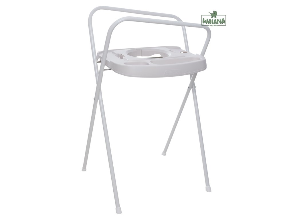 Kovový stojan na vaničku, termovaničku a kúpací kýblik Bébé-Bubble má výšku 98cm, otvor na zavesenie uteráka a vytvorené miesto na mydlo. Stojan je skladací a je vybavený inovatívnym Click systémom. Len 2 kliknutia a vanička je ľahko a bezpečne umiestnená na kúpací stojan. Rovnako ľahko môže byť pomocou kliknutia vanička zo stojana odpojená. Tiež kúpací kýblik Bébé-Bubble je možné na tento stojan umiestniť, takže vám stačí kúpiť len 1 stojan a naň umiestniť najprv Bébé-Bubble a potom vaničku.