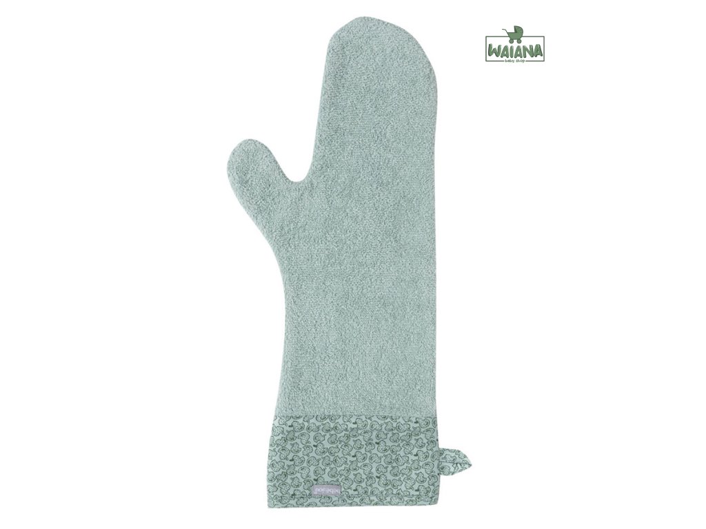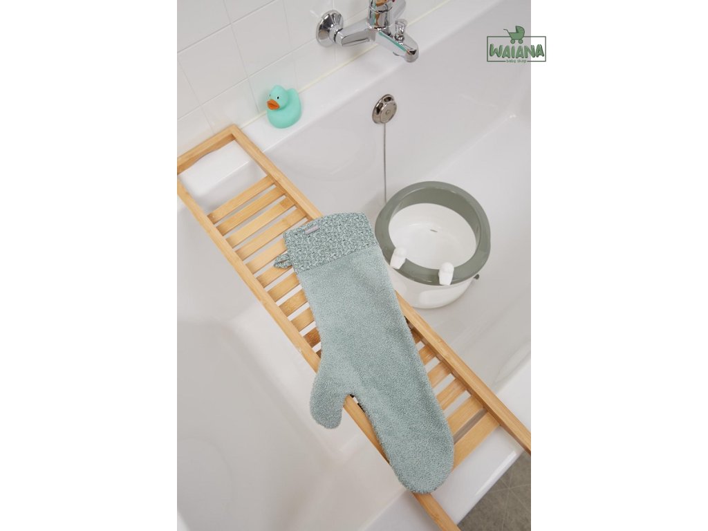 Chcete si užiť pri kúpaní so svojím dieťaťom ešte viac zábavy? Vyskúšajte béžovú froté žinku v tvare veľkej rukavice. Vyrobené z luxusného žakárového froté.