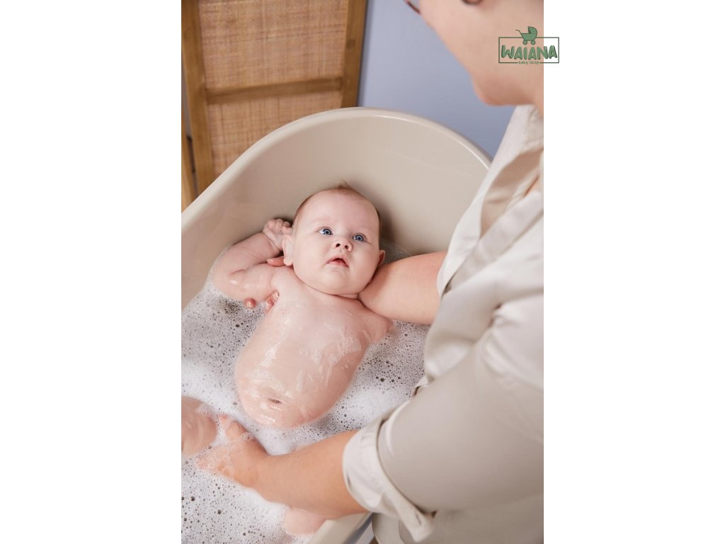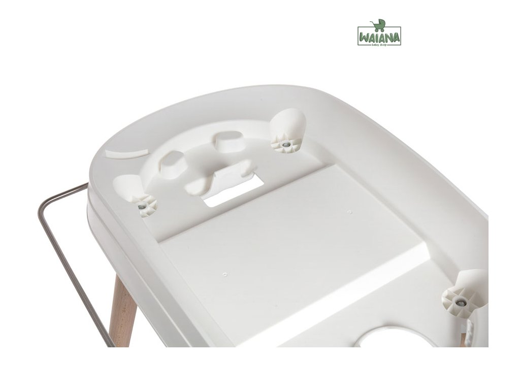 Veľmi stabilný vaňový stojan Sense má nohy vyrobené z lakovaného bukového dreva s certifikáciou FSC. To dodáva stojanu teplý moderný vzhľad. Je vybavený praktickými pomôckami; vpredu je pripevnený držiak na uteráky. Priestranná plastová polička poskytuje dostatok miesta napríklad na šampón, žinku, vodné hračky alebo kúpací gél. To znamená, že máte po ruke všetky potrebné veci, aby ste si s malým mohli v pokoji kúpanie užiť. Inovatívny systém upevnenia zaisťuje, že vaňu možno ľahko pripevniť k stojanu a rovnako ľahko sňať. Po kliknutí môžete svoje bábätko nerušene a bezpečne kúpať.
