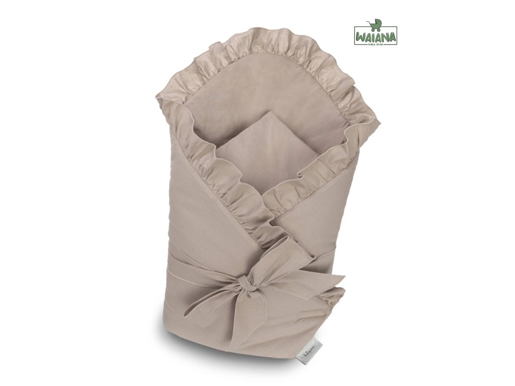 Detská zavinovačka z kvalitnej, mäkkej bavlny je perfektná na nosenie bábätka, uľahčuje kŕmenie a uspávanie bábätka. Prispôsobí sa tvaru tela, zachováva primeranú tvrdosť. Zavinovačka vytvára bezpečnú a pre deti priateľskú atmosféru a pocit pohodlia. Ozdobný volánik dodáva jej jednoduchosti eleganciu.