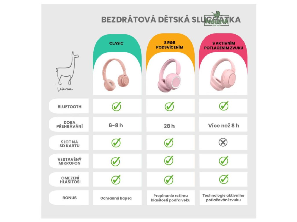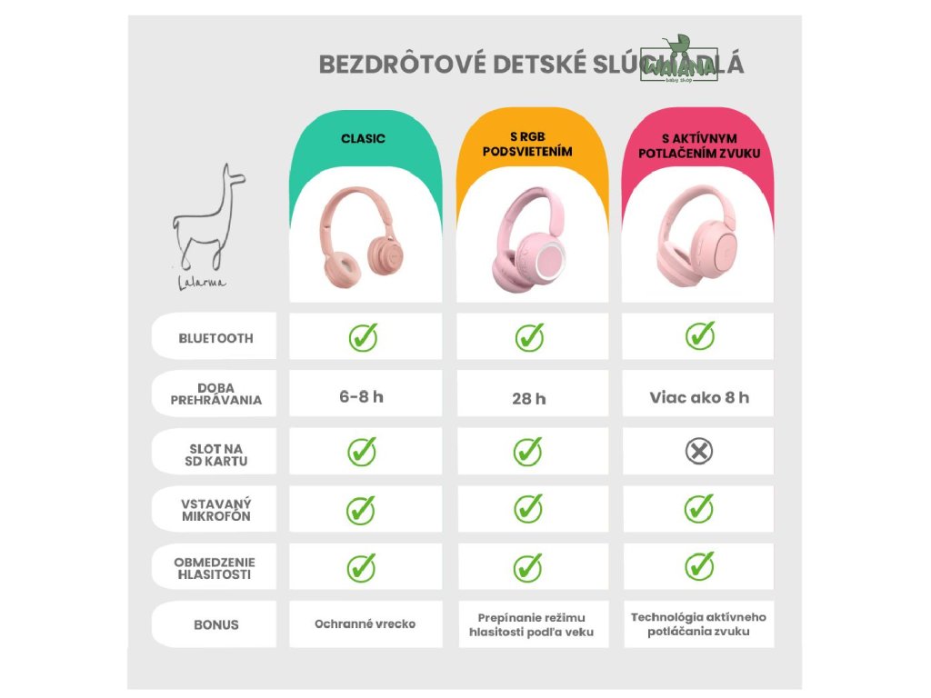 Bezdrôtové detské slúchadlá Pastel RosePripravte deti na dlhé cestyTieto štýlové slúchadlá sú ako stvorené pre deti. Majú krásny dizajn s mäkkým gumovým povrchom, ktorý zabezpečuje, že všetky melódie počujete jasne a čisto. Hlasitosť je obmedzená na max. 85 dB, aby nedošlo k poškodeniu sluchu detí. Slúchadlá sa dajú jednoducho poskladať a sú dodávané s praktickým cestovným vreckom, takže ich deti môžu vziať so sebou všade, kam pôjdete.Hudba stále so sebou: Stačí vložiť SD kartu do slúchadiel!Lalarma bezdrôtové slúchadlá v nádhernej ružovej farbe sú ideálnym kamarátom pre každého hudobného nadšenca. Vďaka technickým parametrom prinášajú skvelý zvukový zážitok. Môžete do nich vložiť Micro SD kartu s obľúbenými pesničkami alebo pripojiť jack konektor a užívať si hudbu celý deň! Sú perfektné na každodenné používanie či už doma, na ceste do školy, alebo počas výletov.Technické parametre:- obmedzenie max 85 dB,- bluetooth: JL 5.0,- čas prehrávania hudby so zapnutým Bluetooth: 6-8 hodín,- pohotovostný režim: cca 450 hodín,- vstavaný mikrofón,- vyrobené z recyklovaného ABS.Súčasťou balenia je nabíjací USB kábel a cestovné vrecko.