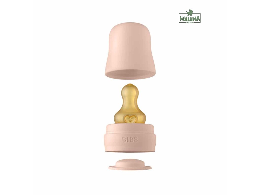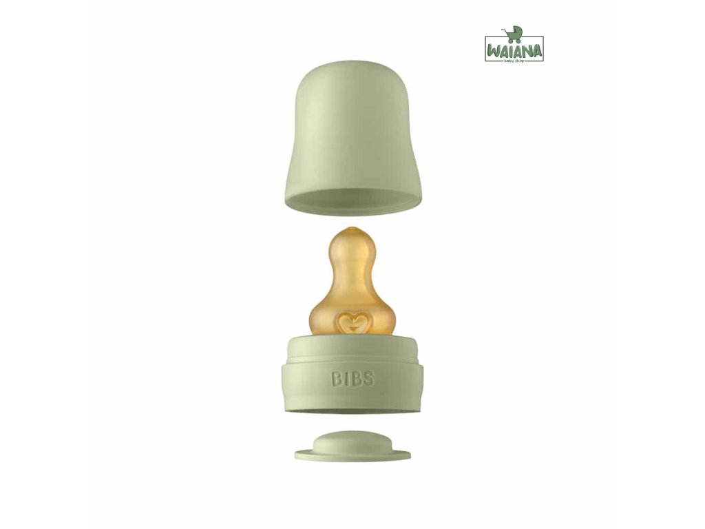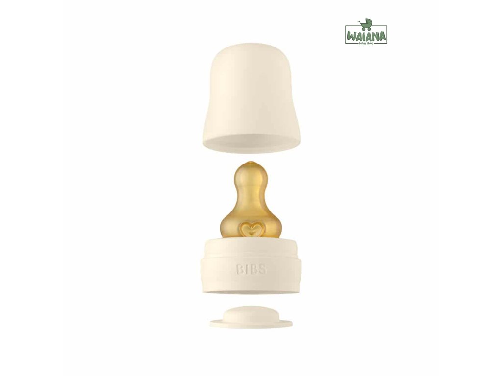 Toto je len set doplnkov na fľašu. Neobsahuje sklenenú fľašu, tú je potrebné zakúpiť samostatne. BIBS Baby Bottle sklenené fľaše sú zárukou, že bábätká prídu pri kŕmení do kontaktu len s kvalitným prémiovým a bezpečným materiálom. BIBS dojčenské fľaše vynikajú svojím nadčasovým retro dizajnom, v ktorom je dokonale prepracovaný každý detail. Okrúhly tvar cumlíka, ktorý deti poznajú u BIBS Colour cumlíkov. Obľúbená chuť a vôňa prírodného kaučuku. Unikátny antikolikový ventil v tvare srdiečka. Odporúčané pôrodnými asistentkami na podporu prirodzeného dojčenia. Všetky časti zo 100% bezpečného potravinárskeho materiálu bez obsahu BPA, PVC a ftalátov., 100% recyklovateľné. CUMLÍK: Cumlíky sú vyrobené z prírodného kaučuku, ktorý je u detí mimoriadne obľúbený vďaka svojej špecifickej chuti a vôni. Ich okrúhly tvar typický pre cumlíky BIBS podporuje podobné umiestnenie jazyka a správnu aktívnu techniku satia ako pri dojčení. Dovoľuje tak jednoducho kombinovať dojčenie s kŕmením z fľaše. Unikátny antikolikový ventil v tvare srdiečka zabráni, aby sa do bruška bábätka dostával vzduch a napomáha tak pokojnému kŕmeniu bez bolesti bruška a výskytu kolík. OBSAH BALENIA: Vrchnák. Objímka. 1 cumlík z prírodného kaučuku (pomalý prietok). Tesniaci disk – umiestnite pod objímku pri prenose, na cestách, do tašky, či kočíka. Skladací lievik – pre rýchle a jednoduché naplnenie fľaše. MIX&MATCH: V predaji je buď kompletná sada dojčenskej fľaše (110 ml alebo 225 ml), ktorá vám poskytne všetko, čo potrebujete, aby ste mohli začať, alebo si môžete zakúpiť samostatnú náhradnú sklenenú fľašu (110 ml alebo 225 ml) a samostatný set doplnkov na fľašu a vyskladať si tak veľkosť a farbu podľa vašich preferencií. V ponuke sú samozrejme aj náhradné cumlíky.BIBS Baby Bottle spĺňa nasledujúce normy:EN 1400+A2EN 14350:2020EN 71-3-2019DIN EN 12868 2017-04DIN EN 1186 2002-07DIN CEN/TS 13130-23 2005-05DIN EN ISO 11885 2009-09 ČISTENIE: Pred prvým použitím výrobok rozoberte a všetky časti sterilizujte ponorením do vriacej vody po dobu 5 minút. Sterilizáciu neskôr opakujte podľa potreby.Čistite ručne s použitím jemného saponátu a kefy na fľaše, dôkladne opláchnite. Fľašu a plastové časti (cumlík nie!) je možné umývať v umývačke riadu. Po umytí nechajte všetky časti dôkladne vyschnúť. Cumlík nevystavujte priamemu slnečnému žiareniu ani iným zdrojom tepla. Z hygienických a bezpečnostných dôvodov cumlík vymeňte za nový každých 4-6 týždňov.Plastové časti a cumlík neohrievajte/nesterilizujte v mikrovlnke. V prípade ohrevu nápoja v mikrovlnke použite len samostatnú sklenenú fľašu a nezabudnite pred kŕmením obsah premiešať a skontrolovať jeho teplotu.