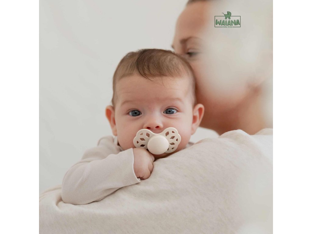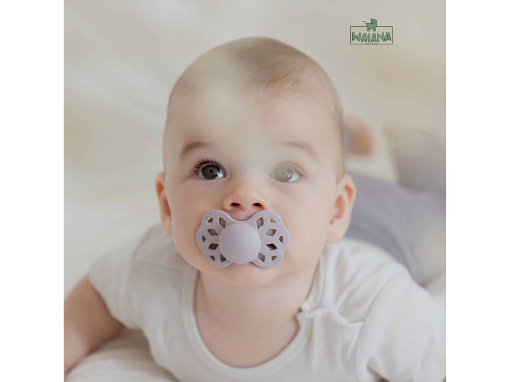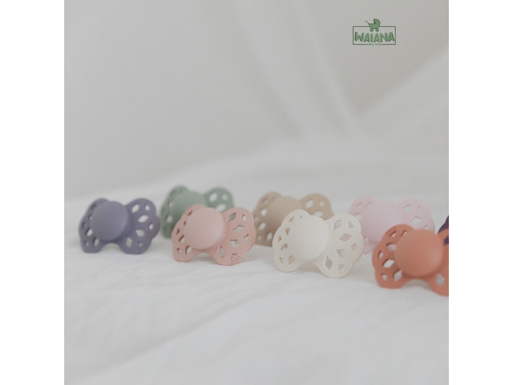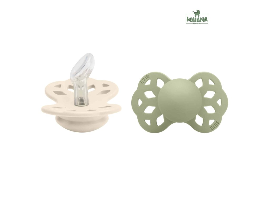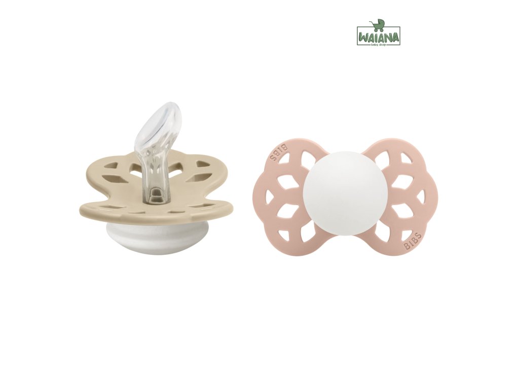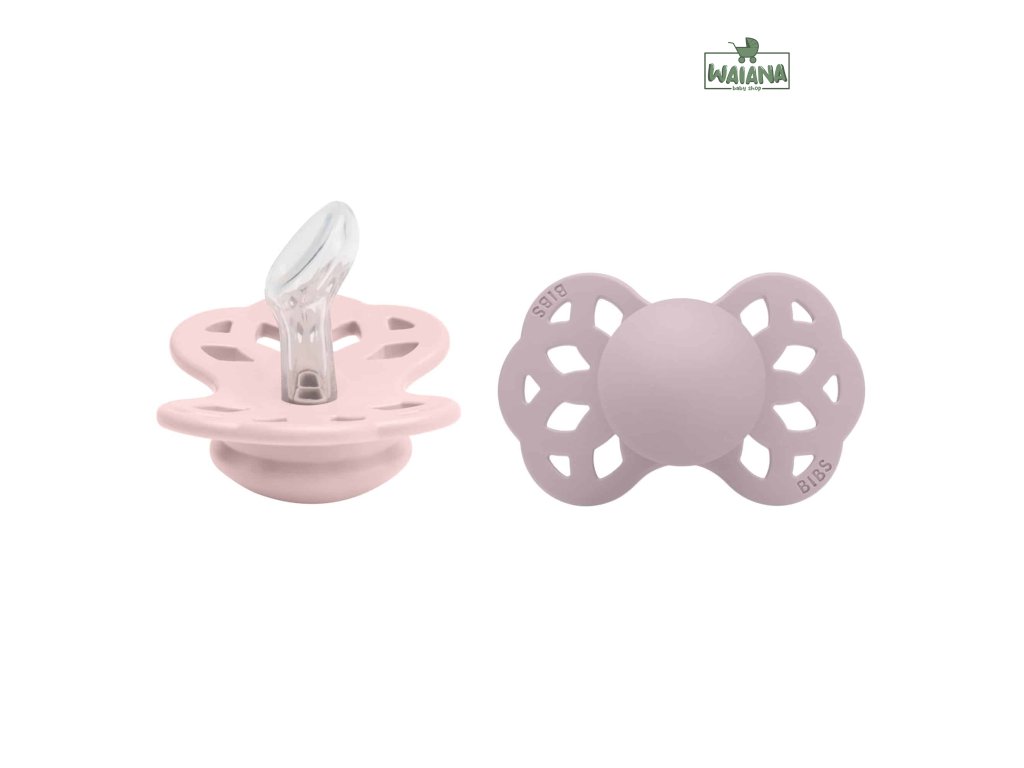 BIBS dobývajú celý svet. Jednoduché a štýlové. Ikonické cumlíky navrhnuté a vyrábané v Dánsku už od roku 1978. Ich minimalistický škandinávsky dizajn a široký farebný výber sú pre BIBS cumlíky typické. Všetky BIBS produkty sú garanciou najvyššej kvality detského sortimentu. BIBS Infinity je exkluzívny ortodontický cumlík anatomického tvaru s jedinečným dizajnom prepletených kruhov, ktoré symbolizujú kolobeh života a nekonečnosť. Dokonalá súhra čistého minimalizmu, elegancie a jemnosti. Anatomicky tvarovaná sacia časť je vyrobená zo 100%-ného medicínskeho silikónu najvyššej kvality a vďaka jej zúženému tvaru v oblasti zhryzu je na zúbky a ďasná vyvíjaný minimálny tlak, čím je zachovaný ich prirodzený vývoj. Cumlík je navrhnutý tak, aby nedráždil citlivú pokožku bábätka. Zloženie: Sacia časť: 100% silikón najvyššej kvality Ostatné časti: polypropylén (PP) Bez BPA, PVC, ftalátov a iných škodlivých látok. Vyrobené v Dánsku. V súlade s európskym štandardom EN 1400+A2. Veľkosti: BIBS Infinity cumlíky sú k dispozícii v 2 veľkostiach v symetrickom aj anatomickom tvare. Veľkosť 1: 0 – 6 mesiacov Veľkosť 2: 6 – 36 mesiacov