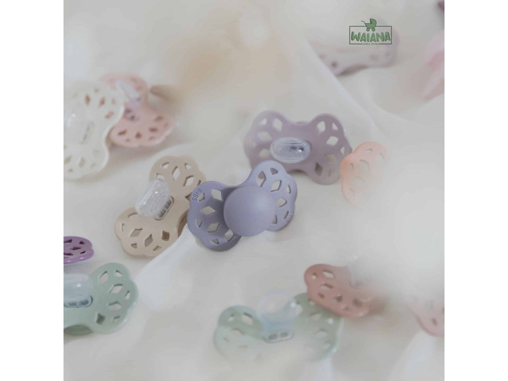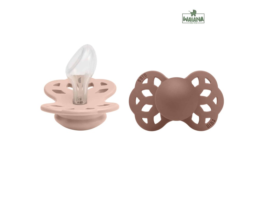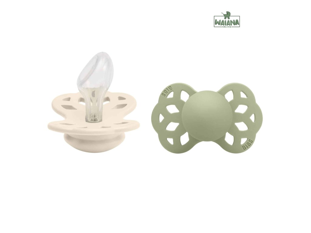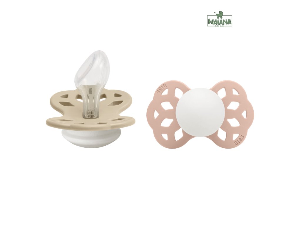 BIBS dobývajú celý svet. Jednoduché a štýlové. Ikonické cumlíky navrhnuté a vyrábané v Dánsku už od roku 1978. Ich minimalistický škandinávsky dizajn a široký farebný výber sú pre BIBS cumlíky typické. Všetky BIBS produkty sú garanciou najvyššej kvality detského sortimentu. BIBS Infinity je exkluzívny ortodontický cumlík anatomického tvaru s jedinečným dizajnom prepletených kruhov, ktoré symbolizujú kolobeh života a nekonečnosť. Dokonalá súhra čistého minimalizmu, elegancie a jemnosti. Anatomicky tvarovaná sacia časť je vyrobená zo 100%-ného medicínskeho silikónu najvyššej kvality a vďaka jej zúženému tvaru v oblasti zhryzu je na zúbky a ďasná vyvíjaný minimálny tlak, čím je zachovaný ich prirodzený vývoj. Cumlík je navrhnutý tak, aby nedráždil citlivú pokožku bábätka. Zloženie: Sacia časť: 100% silikón najvyššej kvality Ostatné časti: polypropylén (PP) Bez BPA, PVC, ftalátov a iných škodlivých látok. Vyrobené v Dánsku. V súlade s európskym štandardom EN 1400+A2. Veľkosti: BIBS Infinity cumlíky sú k dispozícii v 2 veľkostiach v symetrickom aj anatomickom tvare. Veľkosť 1: 0 – 6 mesiacov Veľkosť 2: 6 – 36 mesiacov
