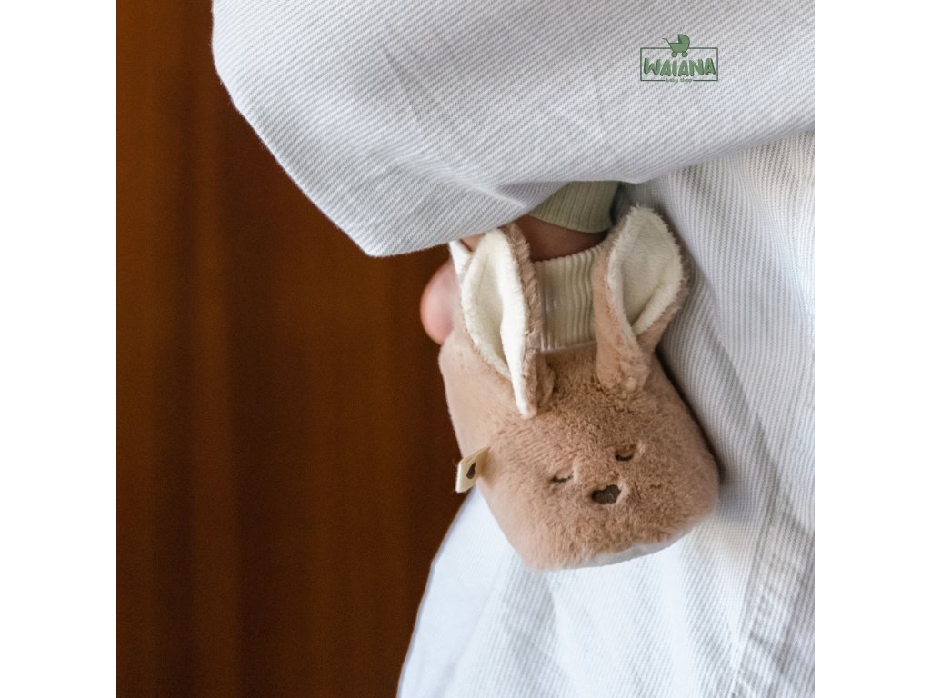 BIBS je obľúbená dánska značka s tradíciou výroby ikonických cumlíkov od roku 1978. Okrem cumlíkov BIBS ponúka aj pestrý prémiový sortiment pre najmenšie deti v minimalistickom škandinávskom dizajne a širokej farebnej palete. Všetky BIBS produkty sú garanciou najvyššej kvality detského sortimentu. Detské papučky BIBS Kangaroo sú ideálne pre roztomilé detské nôžky a udržia ich v teplučku počas chladnejších dní. Majú roztomilé klokanie uši, ktoré dokonale ladia so zvyškom kolekcie BIBS Kangaroo. Papučky majú manžetové lemovanie s jemnou gumičkou, aby pevne držali na nohách bábätka. Ušká na papučkách sú zo šušťavej látky pre senzorickú stimuláciu a perfektne tak kombinujú roztomilosť, funkčnosť a zábavu. Vhodné pre deti od narodenia do cca 6 mesiacov. Údržba: Neperte v práčke. Čistite povrchovo teplou vodou a jemným mydlom, vodu vysajte uterákom a nechajte dôkladne uschnúť na vzduchu. Zloženie: 100 % polyester.