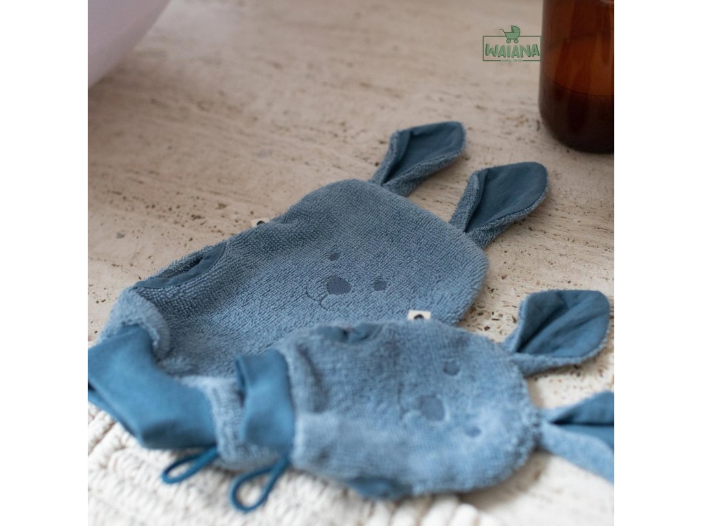 BIBS je obľúbená dánska značka s tradíciou výroby ikonických cumlíkov od roku 1978. Okrem cumlíkov BIBS ponúka aj pestrý prémiový sortiment pre najmenšie deti v minimalistickom škandinávskom dizajne a širokej farebnej palete. Všetky BIBS produkty sú garanciou najvyššej kvality detského sortimentu. BIBS rukavice na kúpanie sú vyrobené z prémiovej 100% BIO bavlny s certifikátom OEKO-TEX®. V balení nájdete jednu väčšiu rukavicu pre rodiča a druhú malú rukavičku, s ktorou sa v kúpeli zabaví dieťatko. Froté rukavičky pomôžu vytvoriť väčšie množstvo peny a starostlivo masírujú a čistia pokožku vášho dieťatka. Froté zo 100% organickej BIO bavlny s certifikátom OEKO-TEX®. Mäkké a jemné k citlivej detskej pokožke. Premyslený strih, manžety okolo zápästia a dierky na palec - rukavica výborne drží na ruke. Roztomilé kengurie ušká. Zloženie : 100% organická BIO bavlna s certifikátom OEKO-TEX®. Starostlivosť: Pred prvým použití operte. Pranie v práčke na 40°C, bežný program. Je možné sušiť v sušičke na bežný program. Nežehliť, nečistiť chemicky, nebieliť. Balenie: 2 ks – veľká rukavica pre rodiča a malá rukavička pre dieťa.